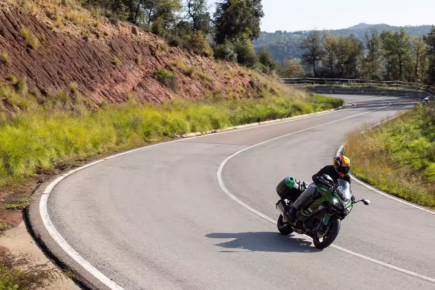 Per le lunghe distanze, il cruise control elettronico è un vero sollievo. La connettività con smartphone tramite l’applicazione Rideology, ora con comando vocale, permette di gestire chiamate, musica e ottenere dati di viaggio. La trasmissione a 6 marce è dotata di un quickshifter bidirezionale (KQS) migliorato, che funziona senza intoppi a partire da 1.500 rpm per cambiate su e giù senza utilizzare la frizione. A proposito di frizione, è assistita e antiscivolo, garantendo una presa leggera e evitando il bloccaggio della ruota posteriore in forti riduzioni. I pneumatici Bridgestone Battlax Hypersport S23 e il serbatoio da 19 litri completano il pacchetto pensato per divorare chilometri.