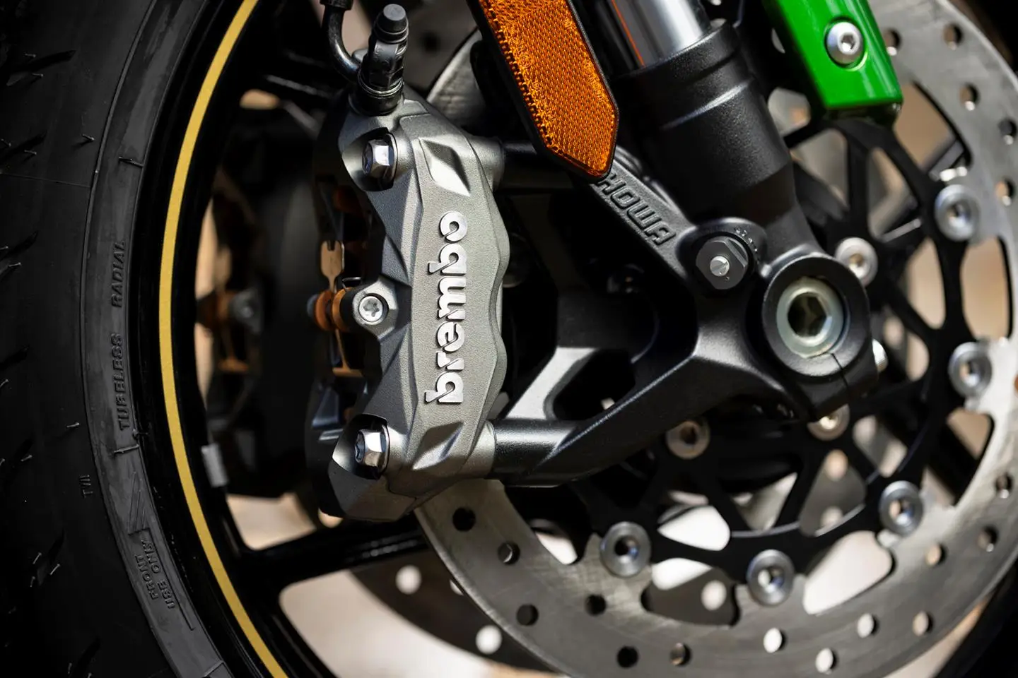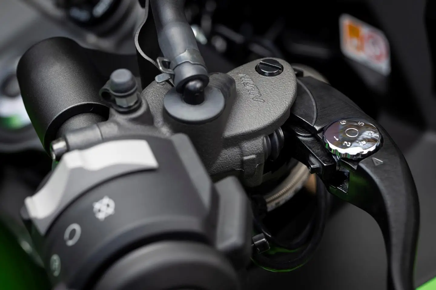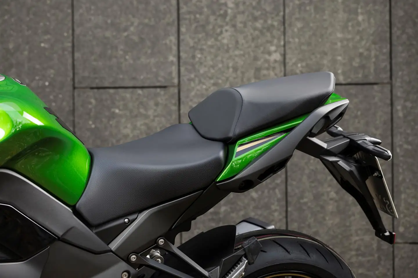 P almeno nel settore delle sospensioni, la Kawasaki ha fatto le cose per bene. La forcella anteriore rovesciata KYB da 41 mm (sia sulla versione standard che sulla SE) consente di regolare la pre-carica della molla, compressione e ritorno. Nella parte posteriore, la versione standard utilizza uno ammortizzatore KYB e la SE sfoggia un Öhlins S46, entrambi con regolazione remota di pre-carica e ritorno.