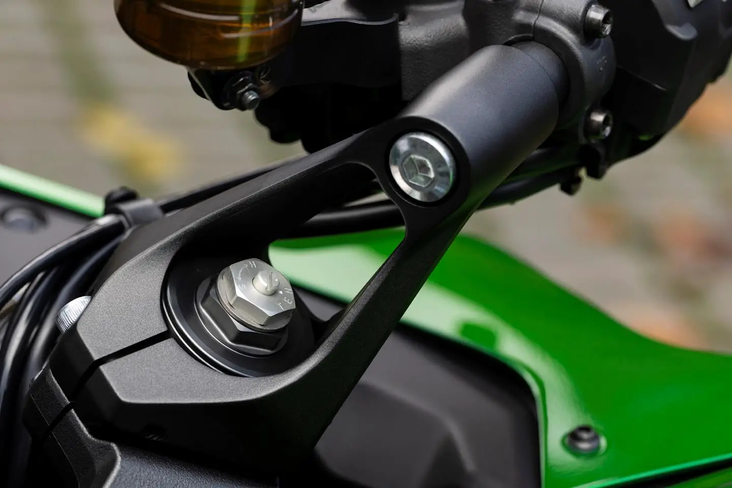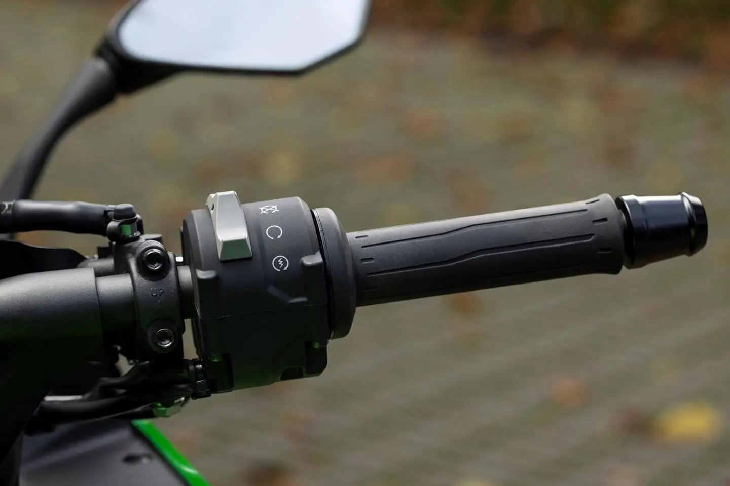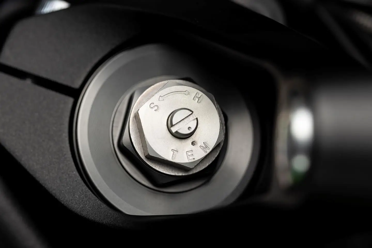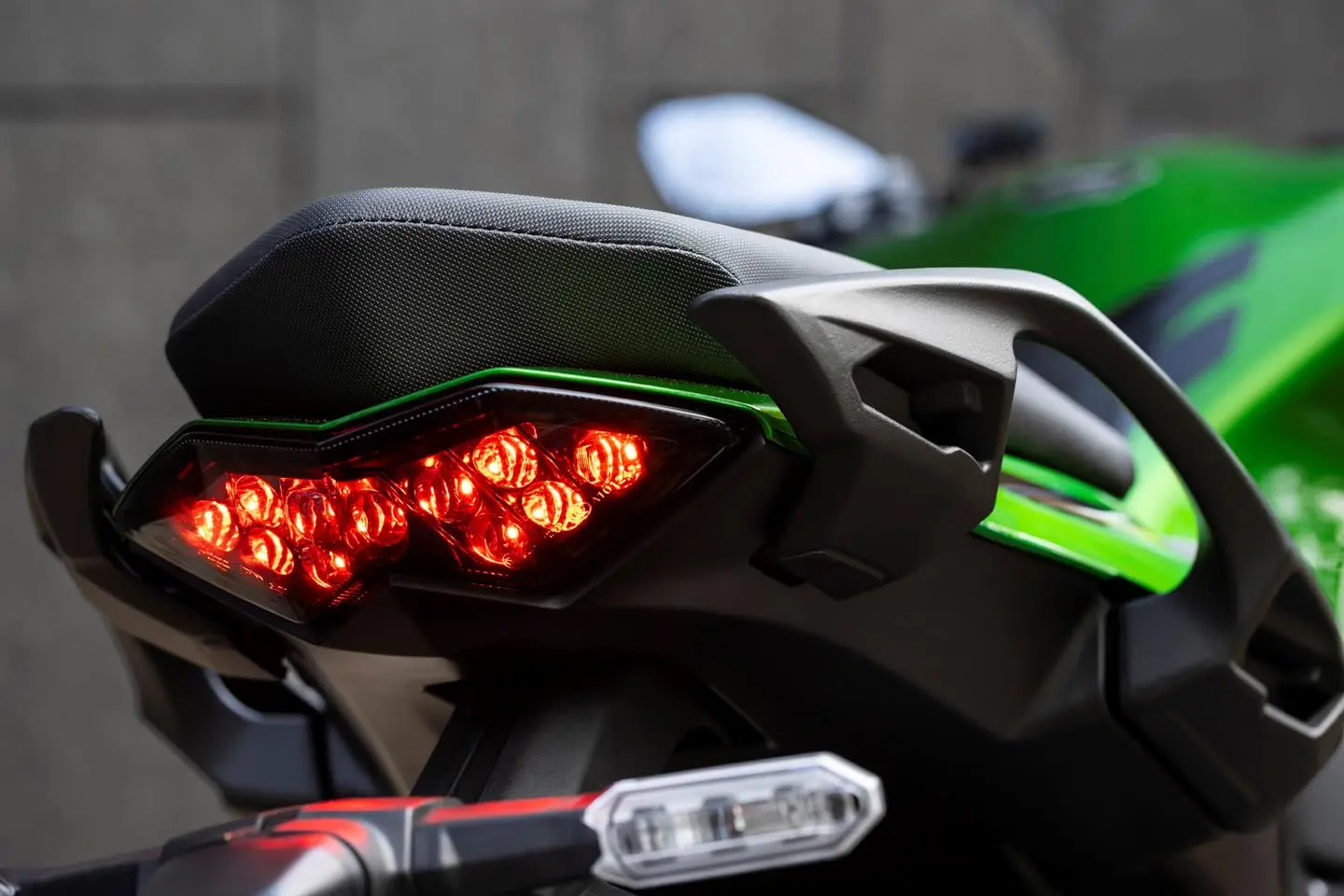 P almeno nel settore delle sospensioni, la Kawasaki ha fatto le cose per bene. La forcella anteriore rovesciata KYB da 41 mm (sia sulla versione standard che sulla SE) consente di regolare la pre-carica della molla, compressione e ritorno. Nella parte posteriore, la versione standard utilizza uno ammortizzatore KYB e la SE sfoggia un Öhlins S46, entrambi con regolazione remota di pre-carica e ritorno.