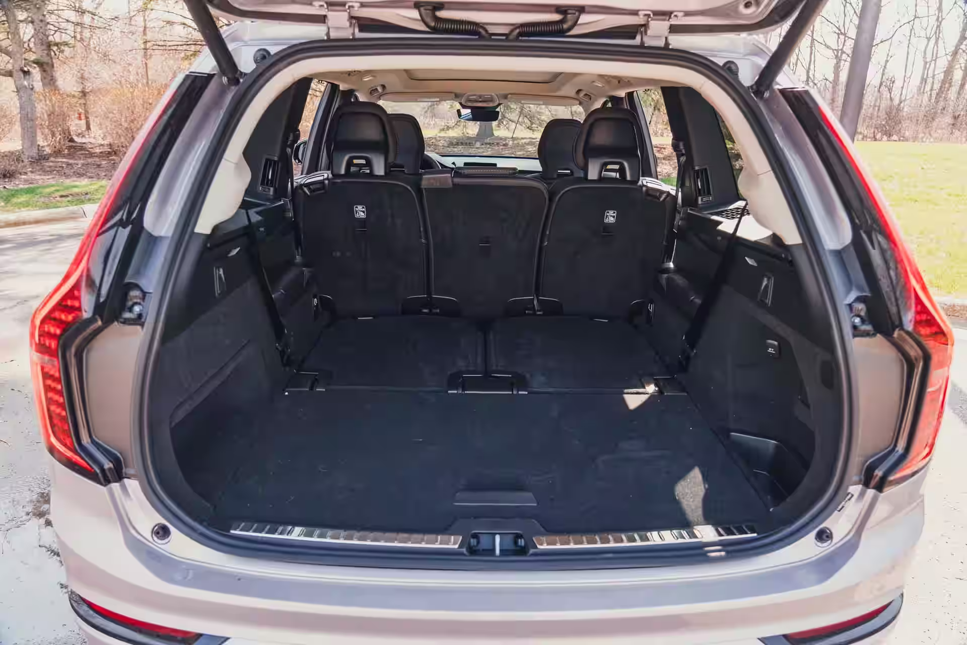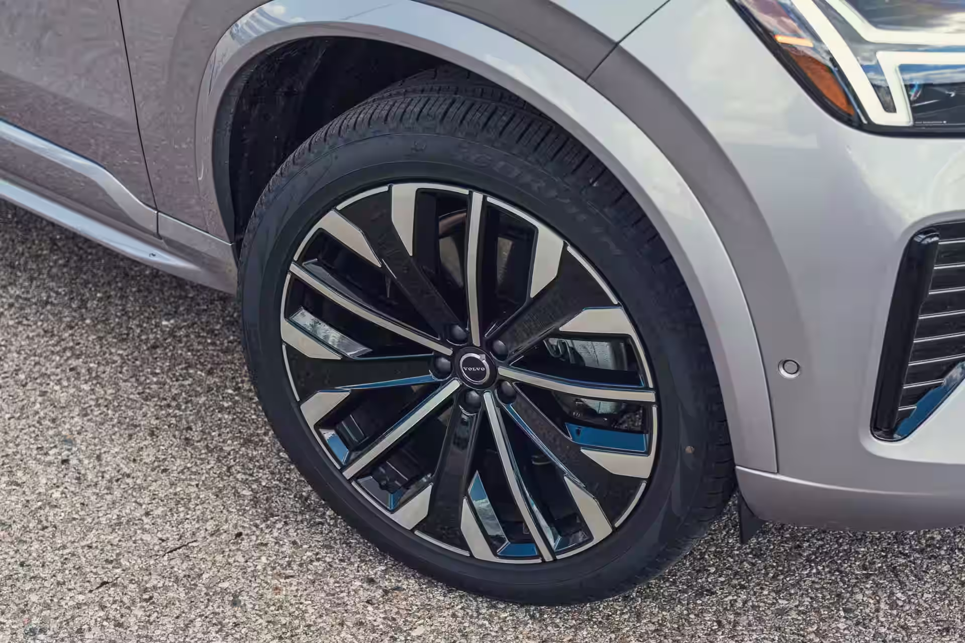 Volvo ha anche dato all’XC90 un sottile restyling per mantenerlo attuale. I fari aggiornati affilano l’anteriore, la griglia ha un aspetto più aggressivo, e gli acquirenti possono scegliere rivestimenti esterni neri invece di argento senza costi aggiuntivi. Quell’aspetto oscurato è quello che rende il SUV più contemporaneo e più desiderabile, specialmente in colori di vernice più scuri come la finitura Aurora Silver su questo veicolo in prova.