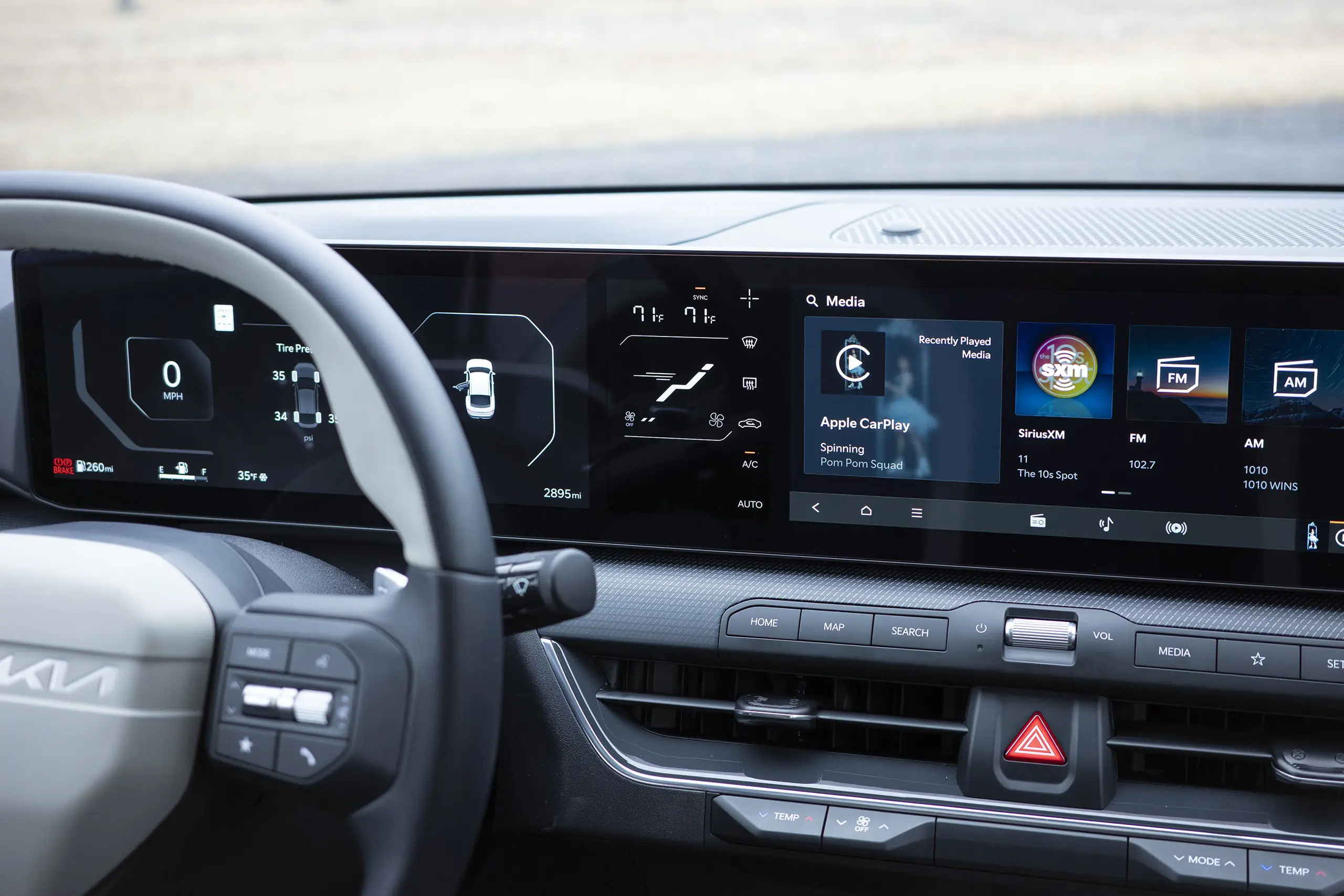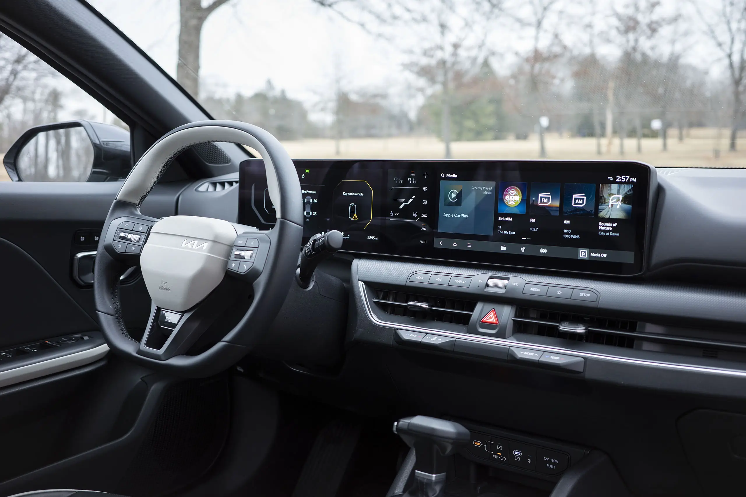 Kia K4 2025の大きな利点の一つは、エントリーモデルでも豊富な技術を提供していることです。すべてのバージョンには、12.3インチのインフォテインメントスクリーンが装備されており、ワイヤレスのApple CarPlayとAndroid Auto、さらに4つのUSB-Cポートが含まれています。アダプティブクルーズコントロールや緊急自動ブレーキなどの機能も標準装備されており、起亜の安全性と快適性へのコミットメントを強調しています。テクノロジー愛好家にとって、K4は真の「Androidユーザーのためのホンダ・シビック」として、完全で直感的なテクノロジーパッケージを提供しています。