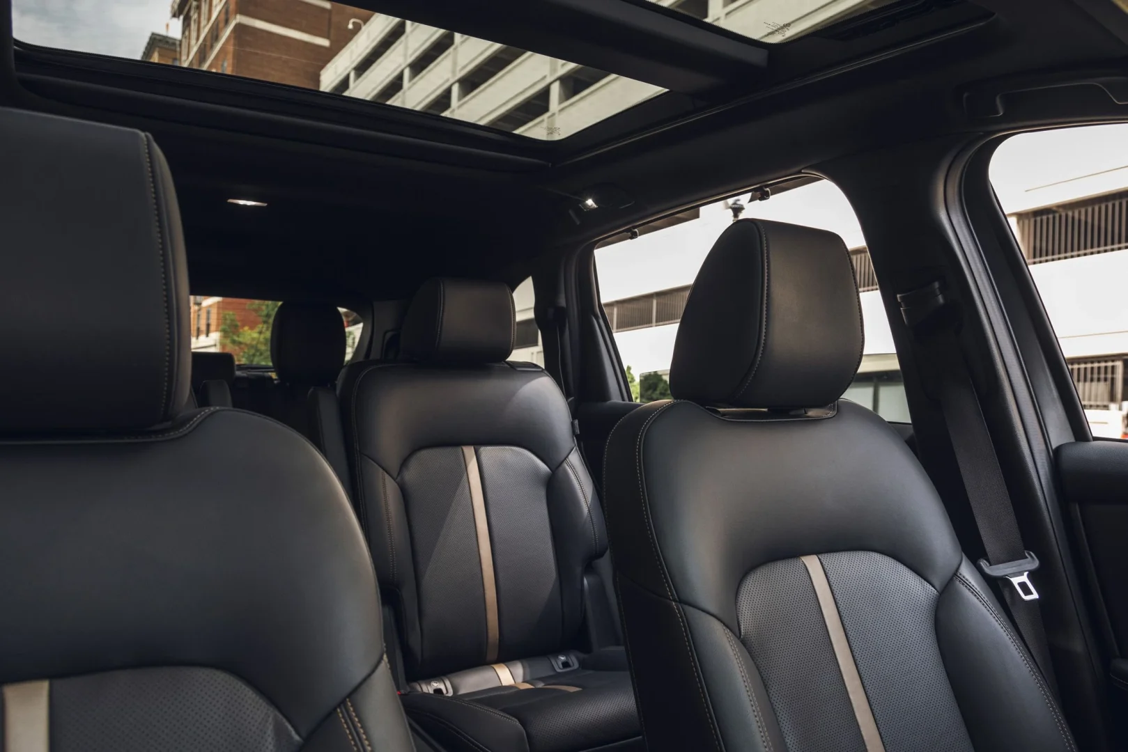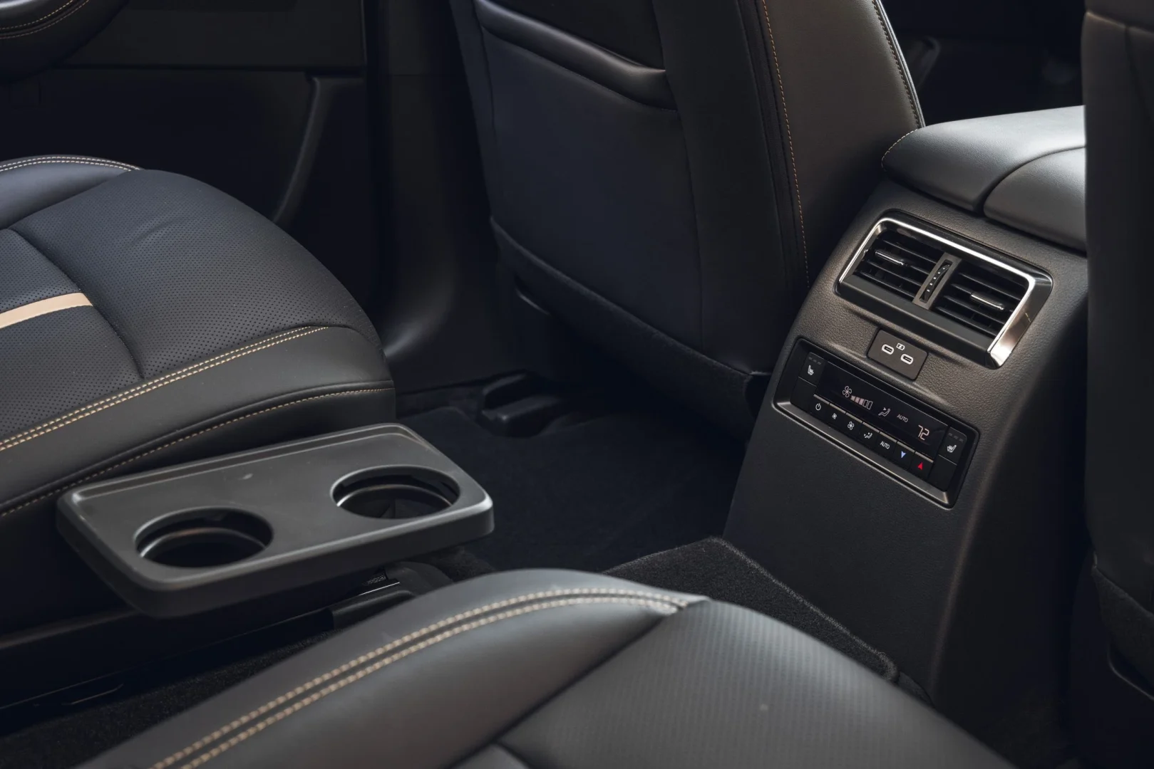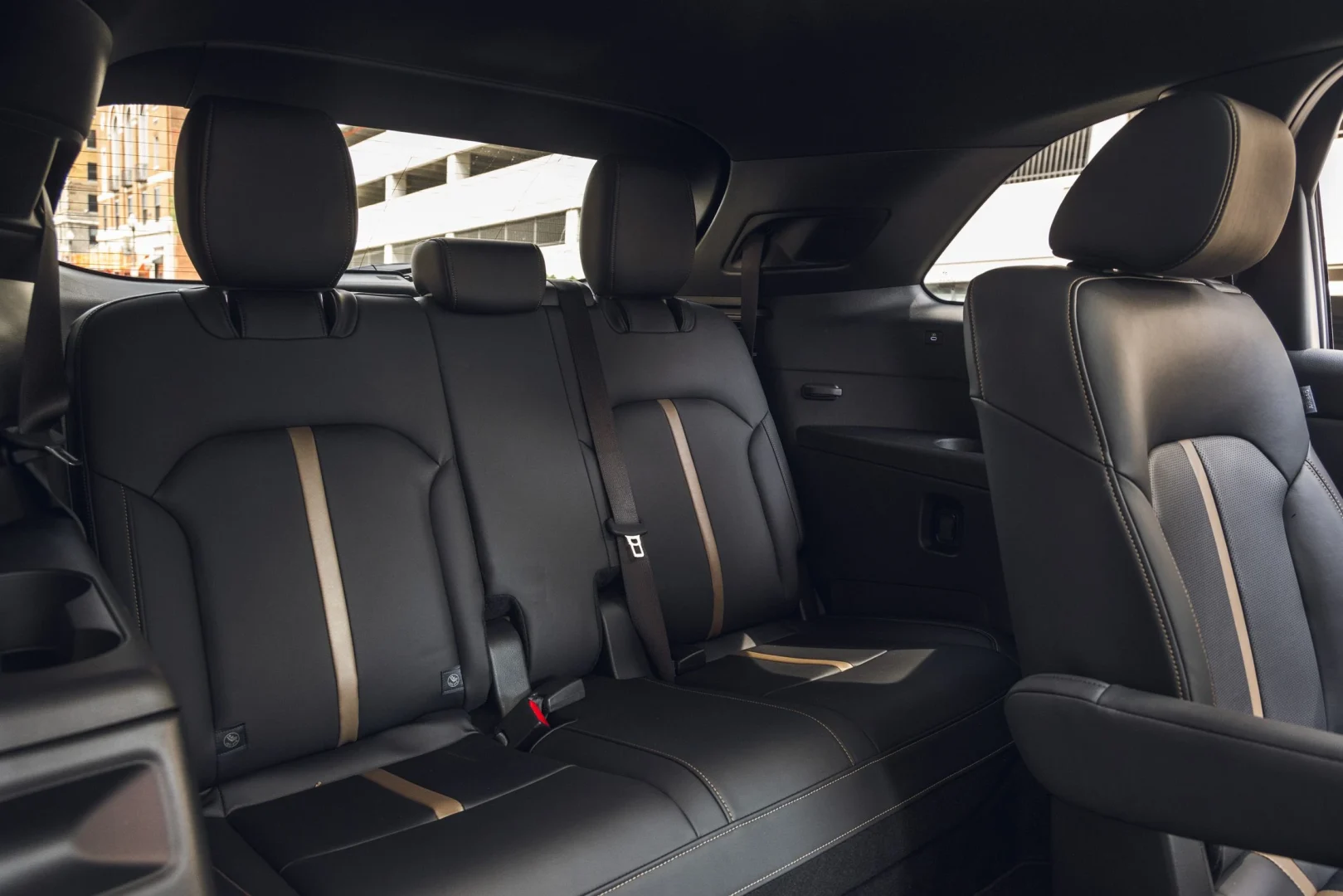 インテリアのハイライトの一つは、座席配置の柔軟性です。このモデルは、第二列に3人掛けの標準シート構成またはより贅沢な体験のためのキャプテンシートオプションが提供されています。この柔軟性は、快適さとスペースを重視する消費者にとって大きな魅力です。さらに、荷物スペースも実用的で、後部シートを立てた状態で16立方フィート、折りたたむことで74立方フィートに拡張できます。