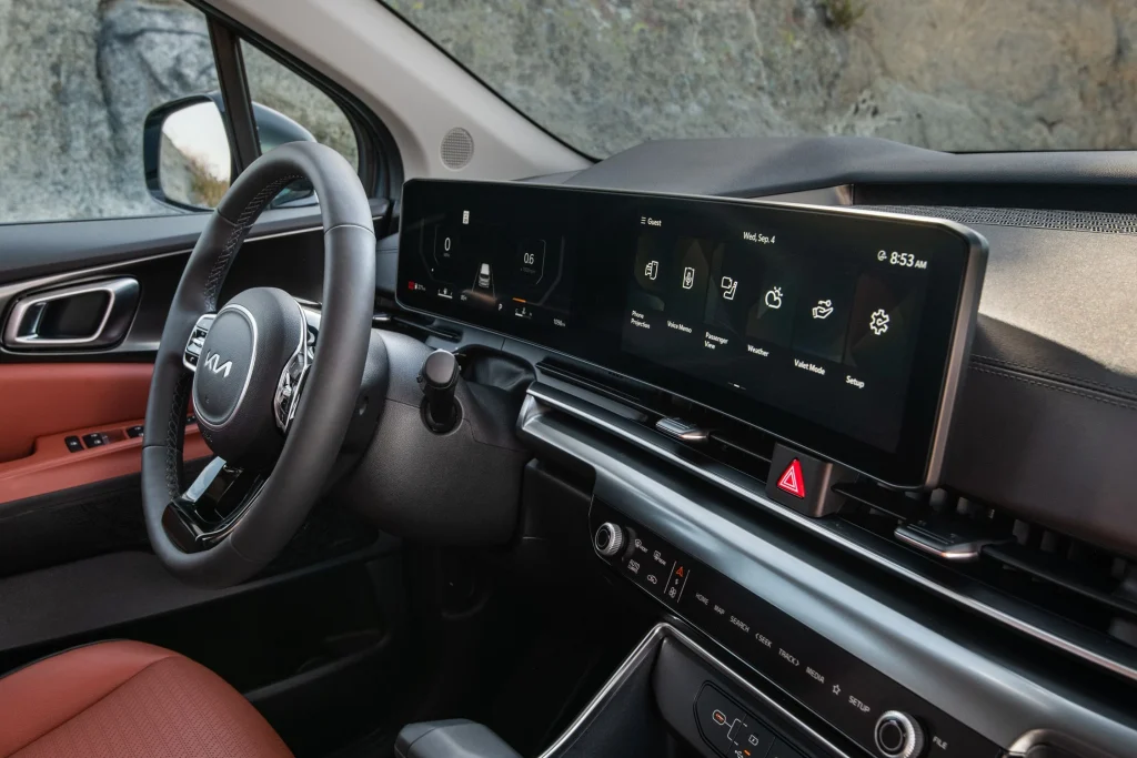 O Carnival 2027 oferece uma central com tela de 12,3″ e, em versões/pacotes, um conjunto com duas telas de 12,3″ integradas no painel (instrumentos digitais + multimídia). Para quem pesquisa “Kia Carnival 2027 multimídia”, os destaques práticos são:
