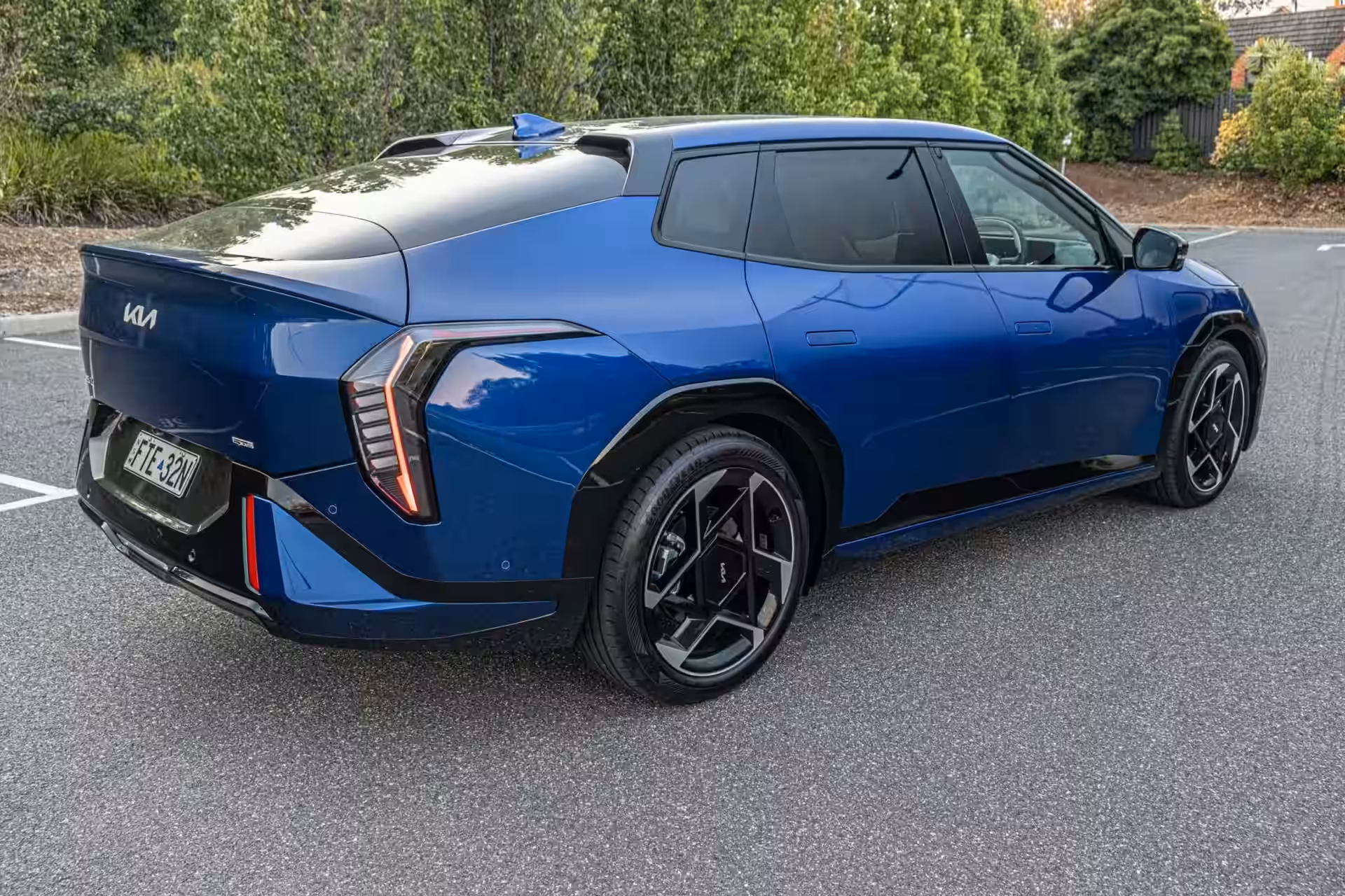 O “resumo mecânico” do EV4 fica ainda mais interessante quando comparamos a linha australiana. A Air Standard Range usa um conjunto de 58.3 kWh, enquanto a Earth Long Range e a GT-Line Long Range usam ambas a bateria de 81.4 kWh e o mesmo motor de 150 kW. A Kia afirma 456 km de autonomia para a bateria menor e 612 km para a maior, números que conversam com a lógica prática desta plataforma: um motor com saída relativamente baixa, uma bateria grande e uma carroceria com formato projetado para minimizar energia desperdiçada. Em um mercado em que muitos EVs ainda são vendidos com base na potência anunciada nos títulos, a Kia está apostando no tipo de especificação que faz sentido para quem mede o próprio trajeto diário em semanas, e não em posts do Instagram.