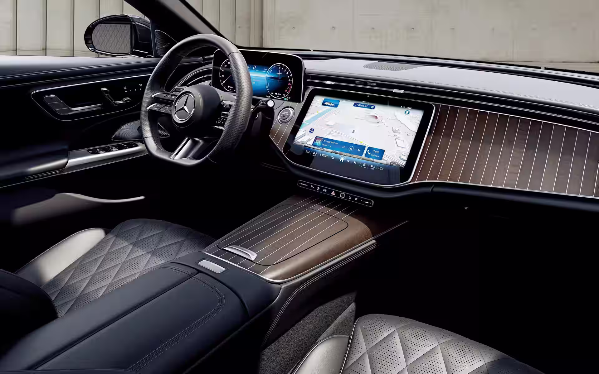 A Mercedes também ampliou o menu de hardware de forma significativa. Para o sedã E 200 e o sedã E 220 d, o opcional Pacote do Motorista agora combina a suspensão a ar AIRMATIC com a direção no eixo traseiro. Essa combinação é a parte tecnicamente mais importante do anúncio, pois afeta diretamente o controle de rodagem, a atitude da carroceria e a manobrabilidade em baixa velocidade. A suspensão a ar com ajuste automático da taxa de mola, força de amortecimento e altura do veículo é uma das maneiras mais claras de aproximar um Classe E do conforto de um modelo topo de linha sem alterar a plataforma.