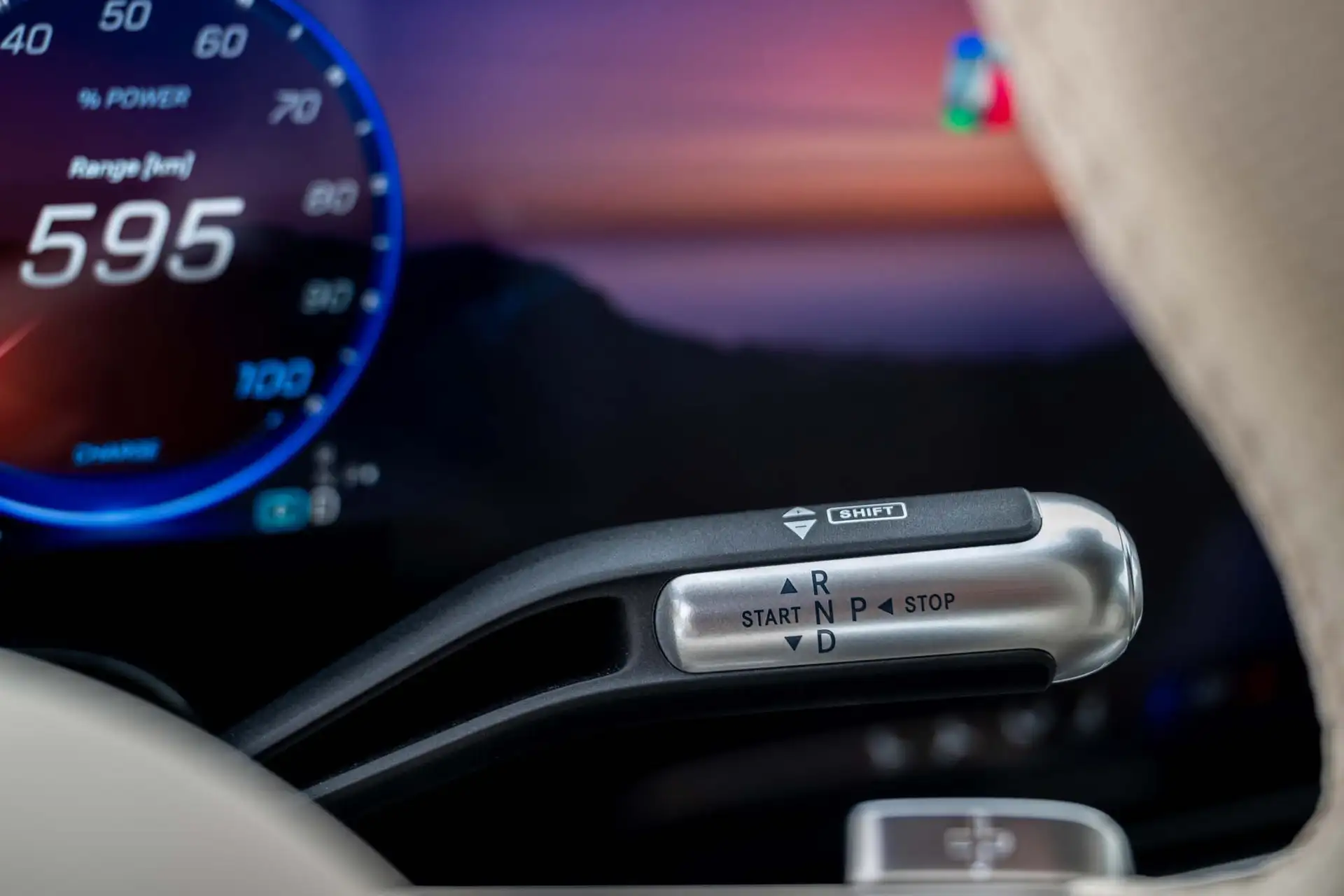 Na frenagem regenerativa, o motorista pode escolher entre diferentes níveis usando as borboletas no volante. O modo mais forte permite uma experiência real de one-pedal drive, com capacidade de regeneração de até 300 kW. Para uso urbano, isso reduz bastante a necessidade de tocar no pedal de freio e ajuda tanto no conforto quanto na eficiência.
