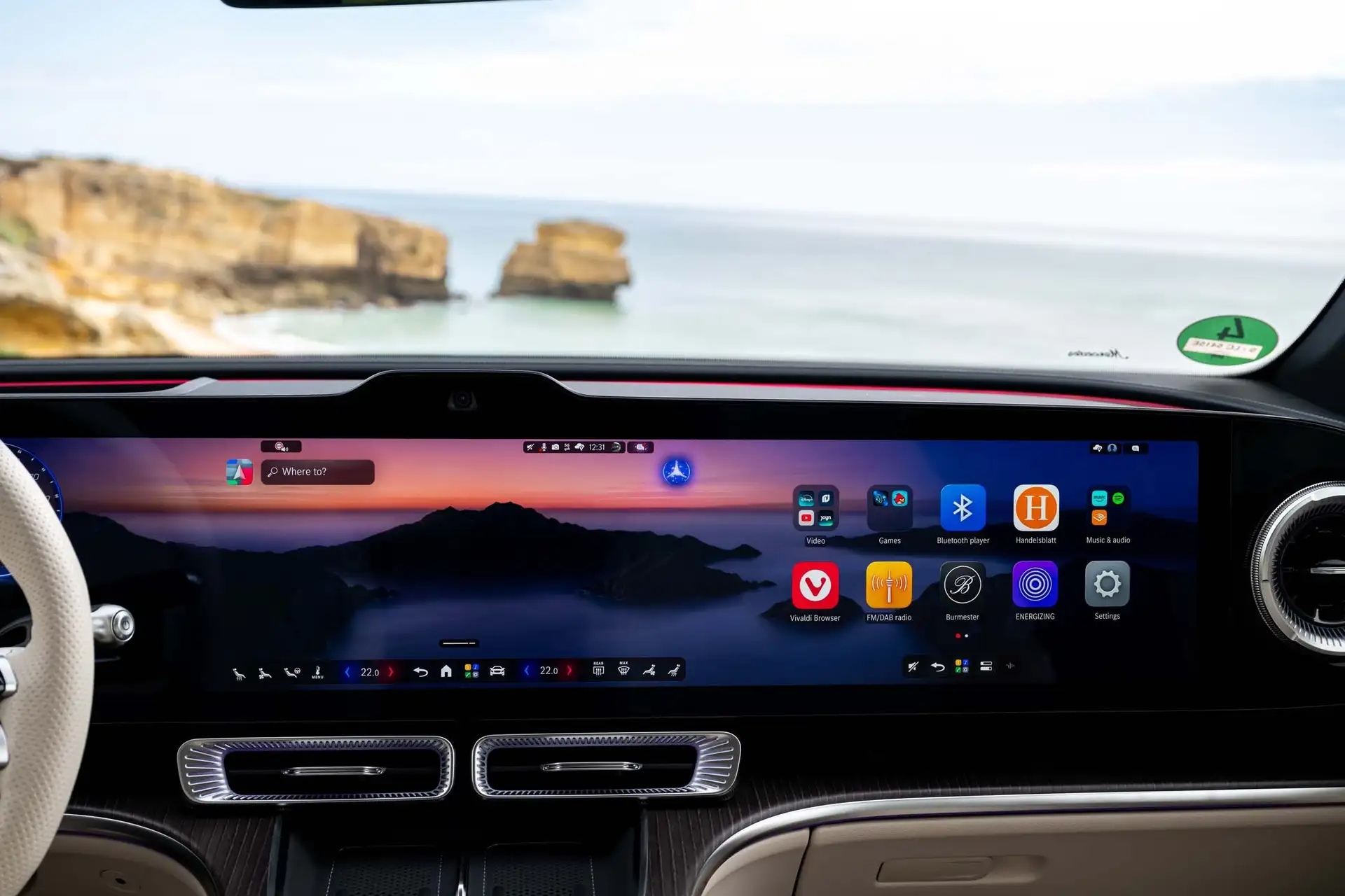 O sistema usa o novo MB.OS, plataforma de software com forte integração de inteligência artificial. O reconhecimento de voz foi desenvolvido para comandos mais naturais, sem exigir frases robotizadas. Em vez de ordens rígidas, o usuário pode falar de modo mais humano, como pedir para aumentar a temperatura ou alterar funções específicas da cabine.
