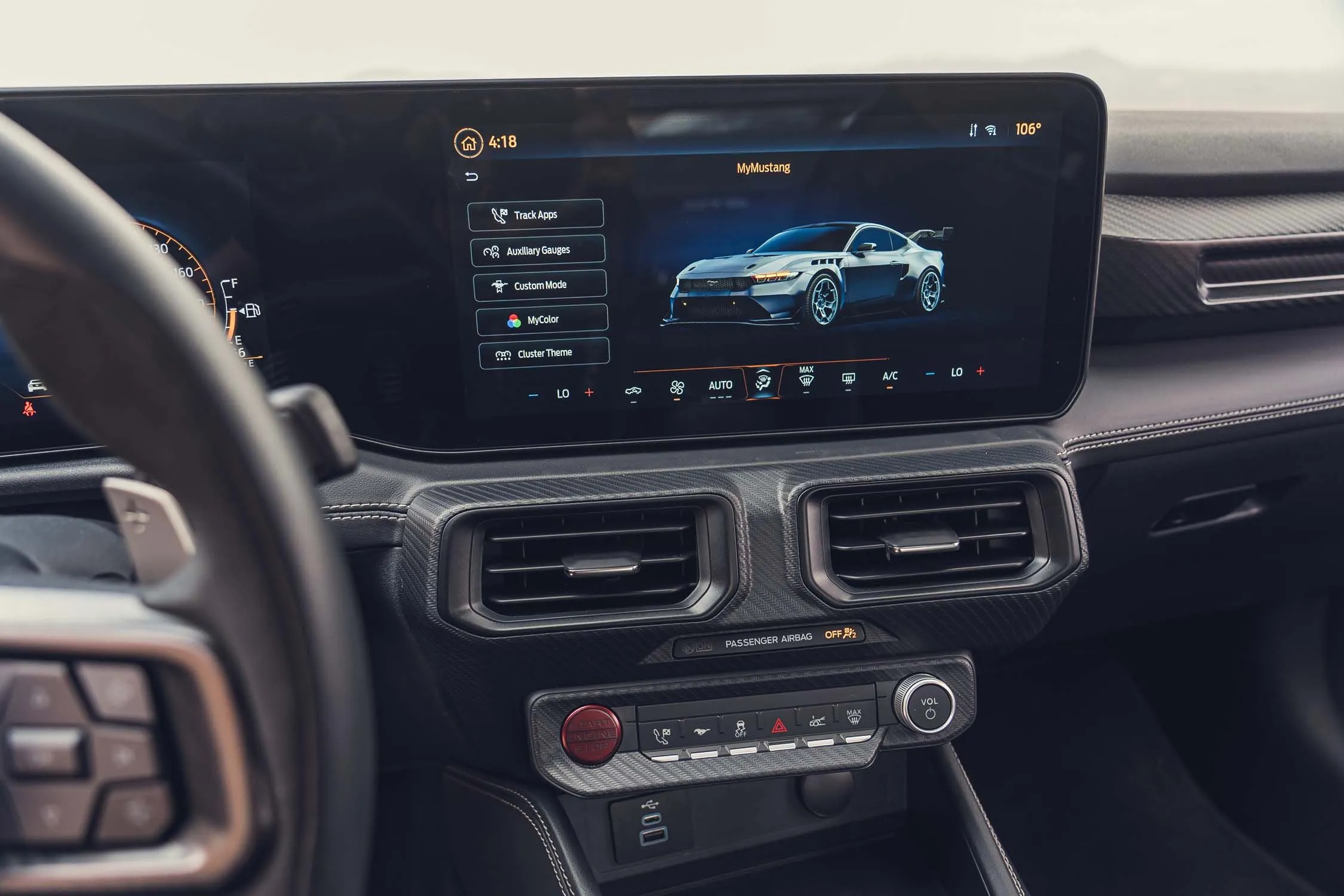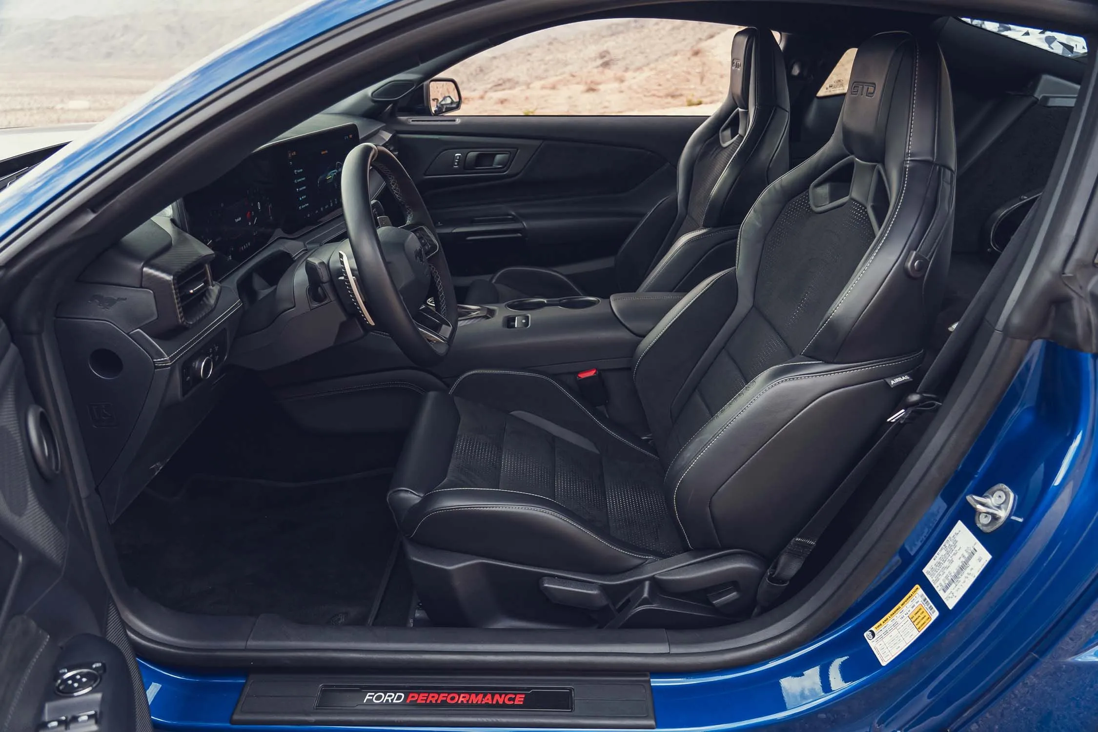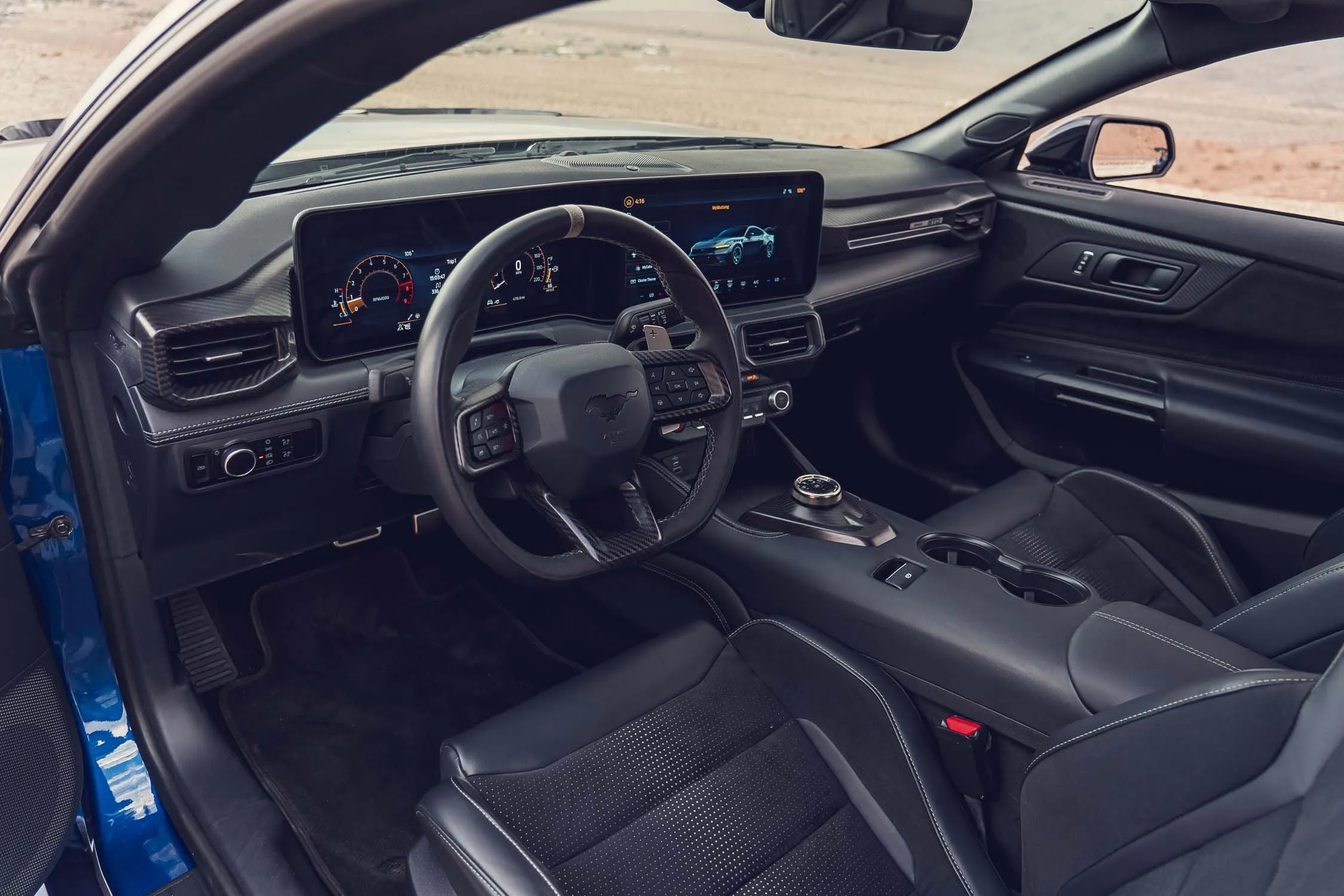 O interior, embora traga bancos Recaro exclusivos e menus especiais para performance, reutiliza elementos do Mustang EcoBoost, o que contrasta com o preço elevado. Apesar disso, o verdadeiro valor do GTD está debaixo da carroceria: engenharia de pista pura e um projeto pensado para vencer rivais de renome global.
