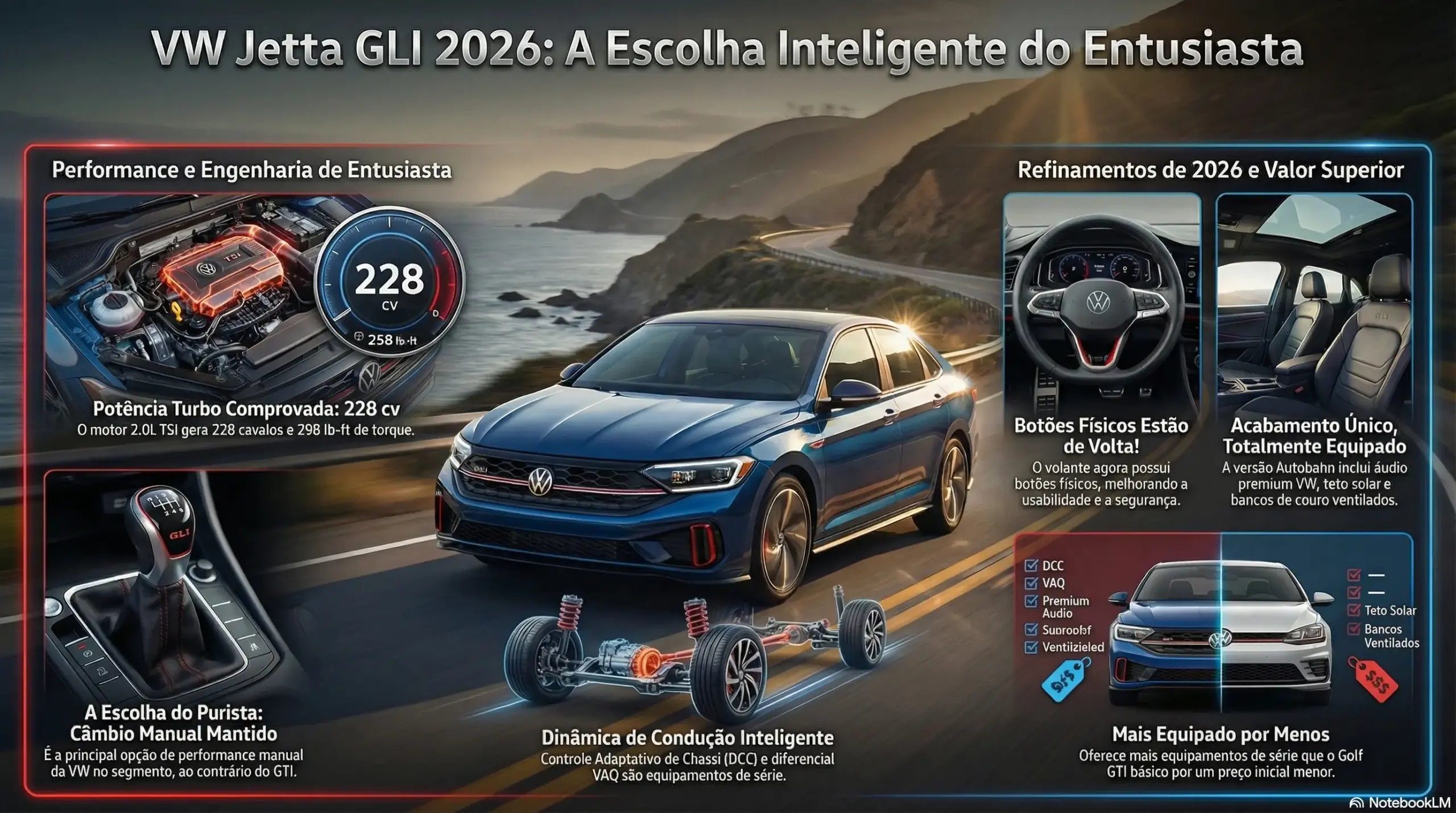 “O Jetta GLI Autobahn não é apenas uma alternativa ao Golf GTI; ele é posicionado como uma oferta objetivamente superior em equipamento e valor.”