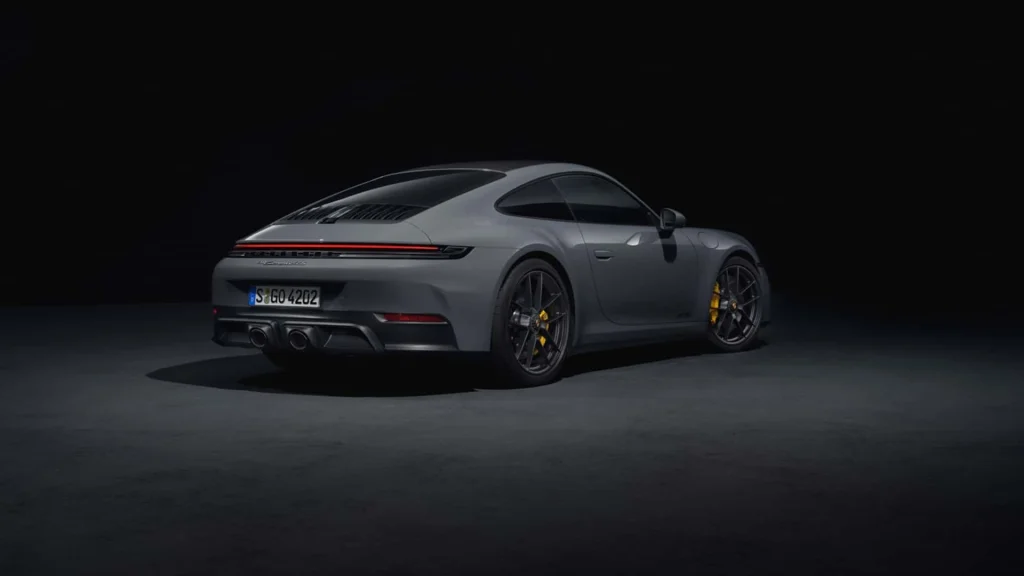As mudanças de design do novo 911 híbrido são discretas, mas perceptíveis. Os faróis dianteiros são mais finos e angulares, com uma nova assinatura de luz diurna em LED. O para-choque dianteiro tem entradas de ar maiores e mais agressivas, enquanto o para-choque traseiro tem saídas de ar redesenhadas. As lanternas traseiras também são mais estreitas e escuras, dando ao 911 uma aparência mais moderna.