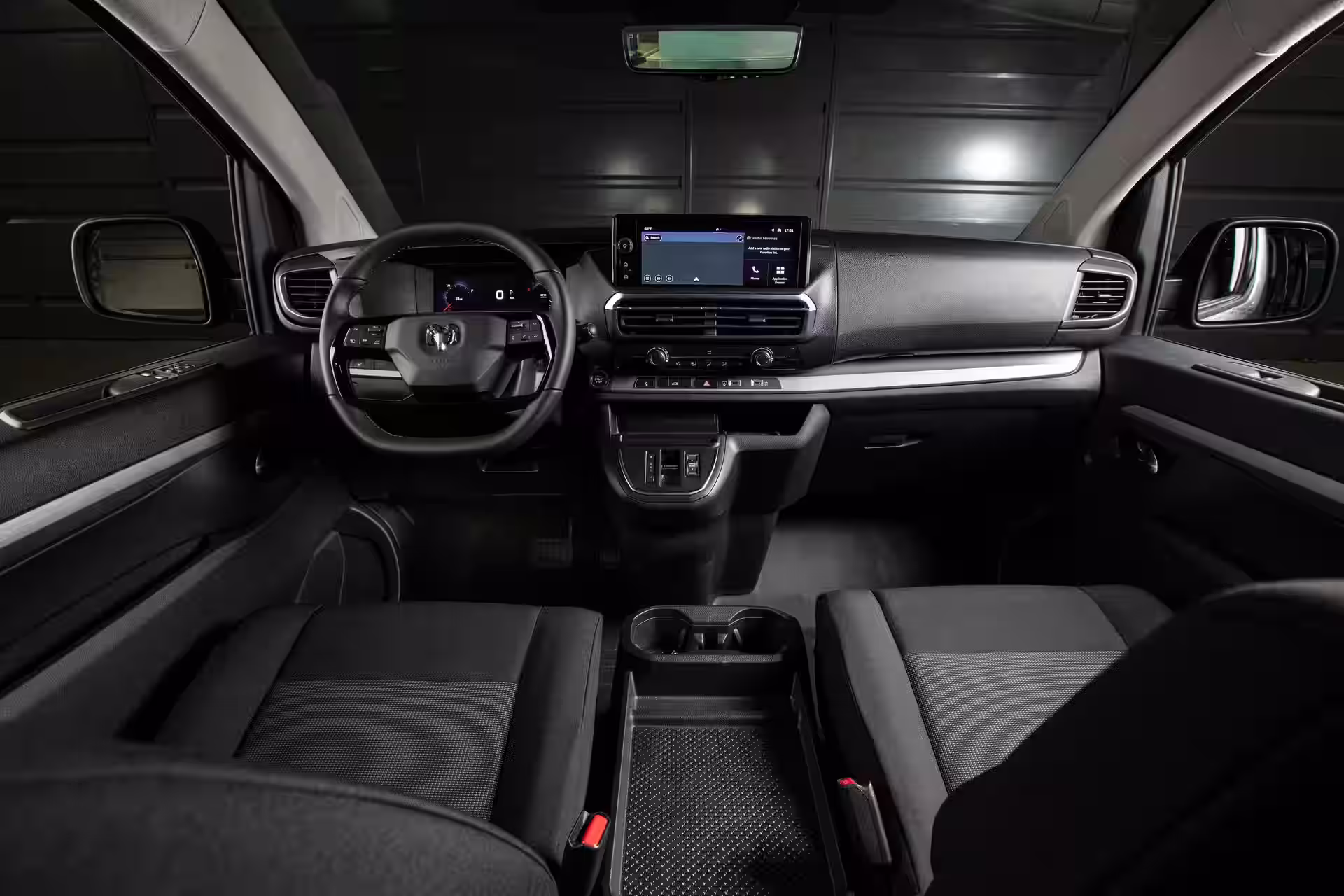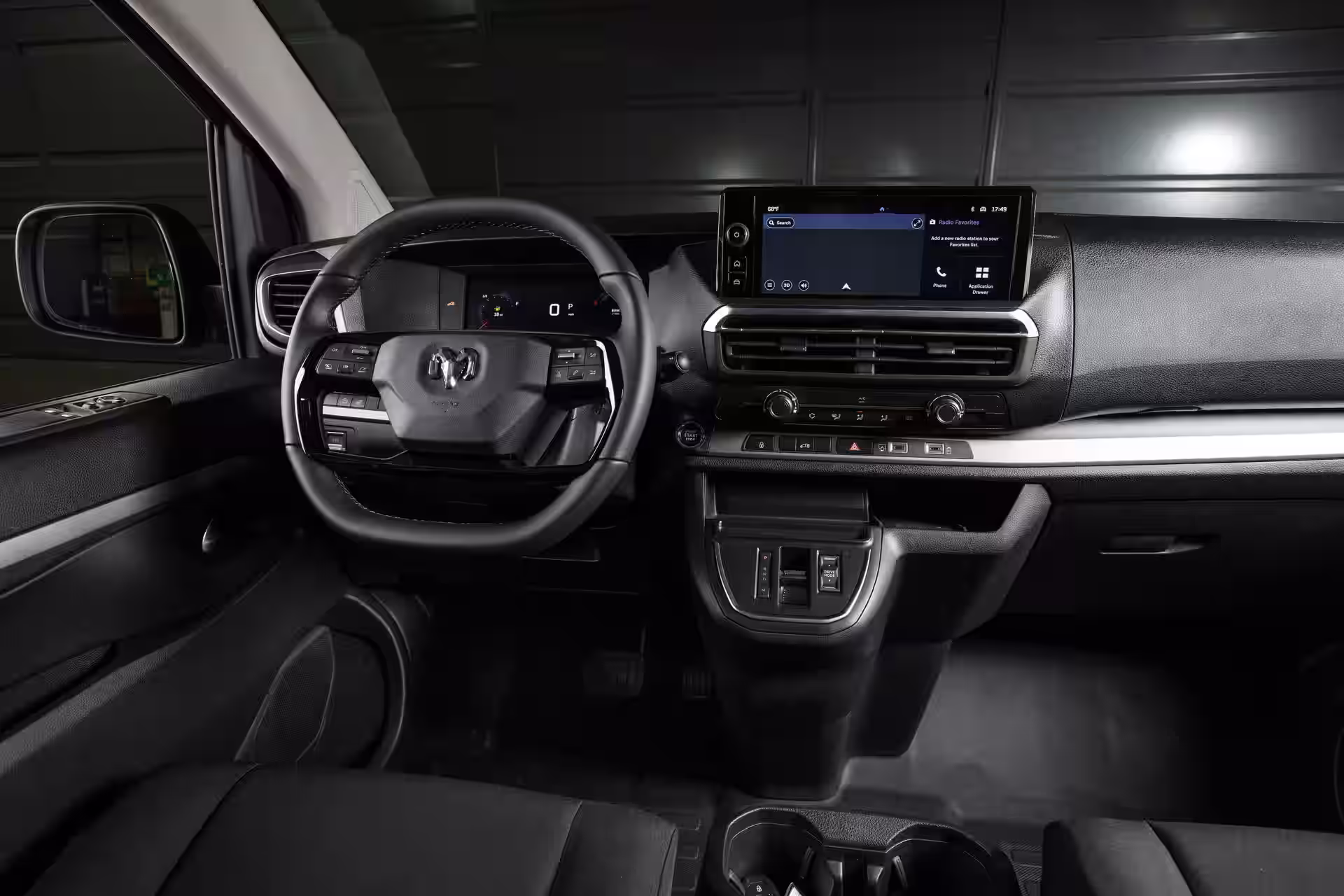 O interior da ProMaster City 2027 segue a estética europeia: funcional, sem excessos, mas bem resolvido. A central multimídia de 10 polegadas traz Apple CarPlay e Android Auto sem fio, além de carregamento por indução na versão SLT.