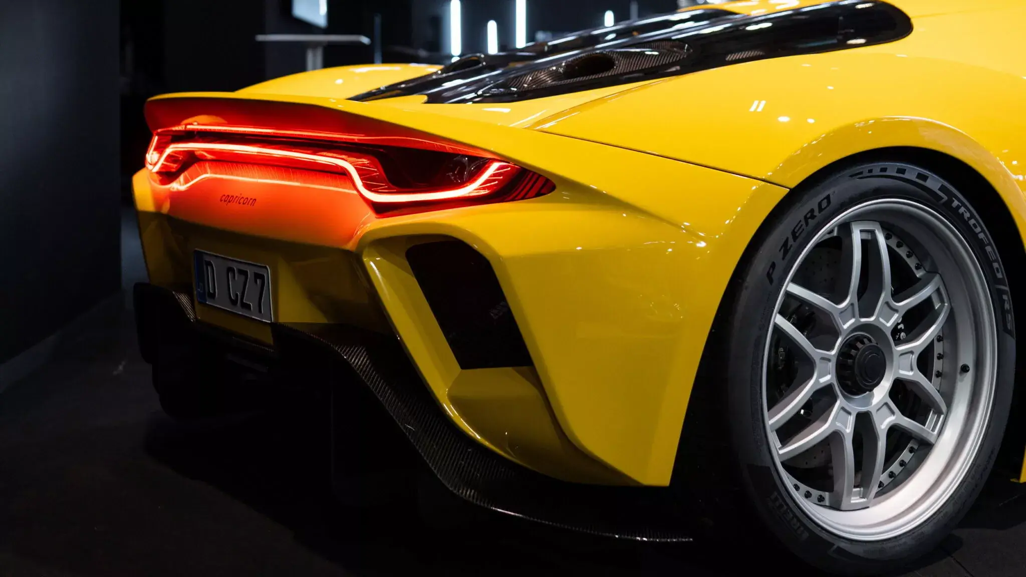Визуальная подпись Capricorn 01 Zagato — творение миланского дома Zagato с более чем вековой историей создания эксклюзивных кузовов. Самым ярким элементом является крыша «double bubble» (двойной пузырь), которая напоминает о классике вроде Aston Martin DB4 GT Zagato, но адаптирована под современную аэродинамику. Фары в форме миндаля прорезают сужающуюся переднюю часть, а двери типа «крыло чайки» облегчают доступ в низкий кокпит.