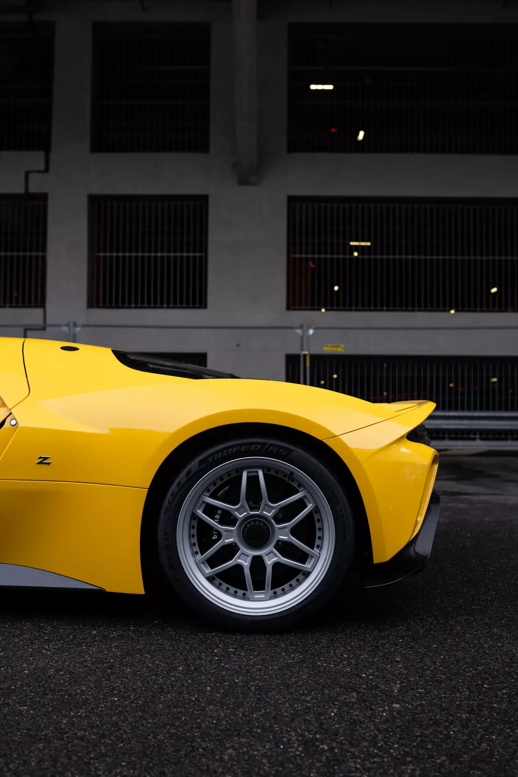 Задние арки, вдохновленные такими легендами, как Ford GT, интегрируют задние фонари во всю ширину, создавая футуристично-ретро образ. Конструкция представляет собой монокок из углеродного волокна, легкий и жесткий, что позволяет сохранить сухую массу ниже 1200 кг. Прототипы представлены в ярких цветах: 01 — в зеленом Knokke с коричневым интерьером, а 02 (выставленный на Retromobile) — в желтом Giallo Sole с синей замшей.