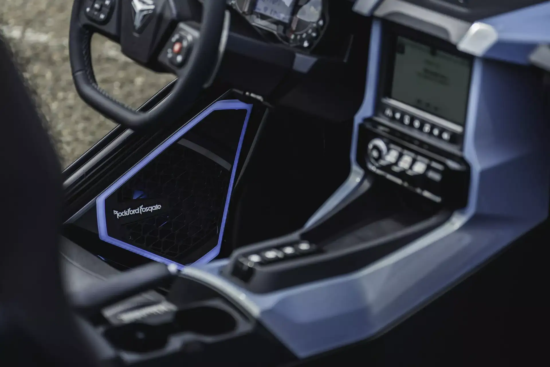 Звук обеспечивает Rockford Fosgate Stage 3 Max, комплект динамиков для открытых пространств с мощным басом даже на высокой скорости. Но особенность — система подсветки XKGlow с настраиваемыми LED-лампами, меняющими цвет и яркость. Управление через мобильное приложение синхронизирует свет с музыкой, создавая световые шоу и делая ночи незабываемыми.