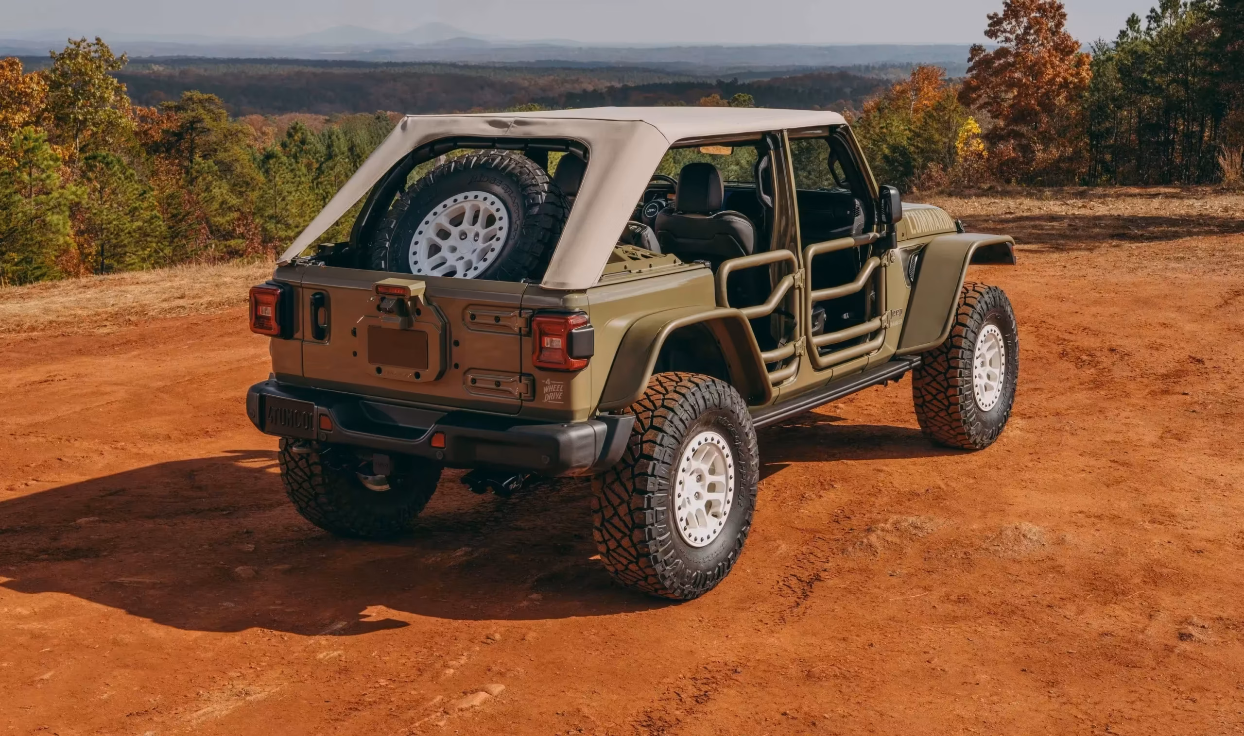 - Кросс-реинжиниринг: Чтобы разместить массивные шины и улучшить динамическую работу, установлены приподнятые стальные крылья (high-top fenders). Также запаска, традиционно размещенная на задней двери Wrangler, была перенесена во внутреннюю грузовую зону. Этот стратегический шаг оптимизирует распределение веса и значительно улучшает углы съезда — деталь, которая доказывает, что это не только более радикально, чем AMG, с внешней стороны, а также по функциональности.