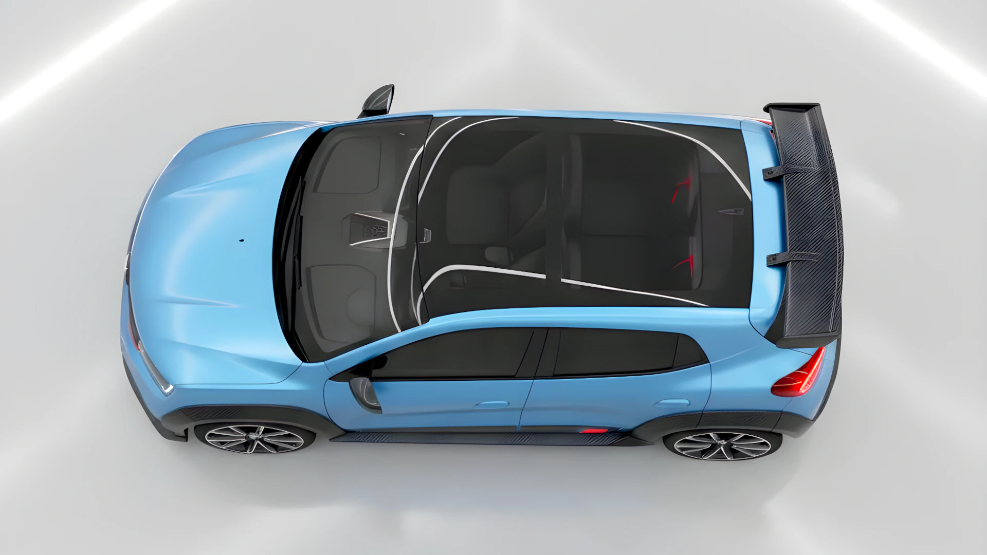 Base leve (cerca de 825 kg no modelo civil), reforços inteligentes e um powertrain compacto com alta densidade de torque. A projeção aponta cerca de 950 kg já com motor turbo, rodas 17”, freios maiores e estrutura reforçada — ainda incrivelmente leve para os padrões atuais. Resultado? Resposta instantânea, mudanças de direção vivas e aceleração que surpreende mais por agilidade do que por números brutos.