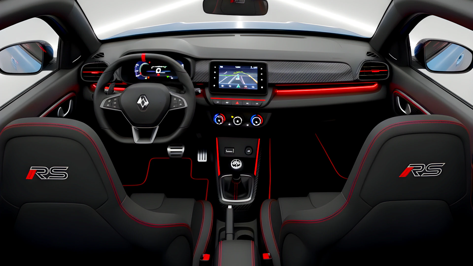 A aerodinâmica não seria enfeite: splitter funcional, saias, difusor e asa traseira para estabilidade em alta e apoio em curvas rápidas. Dentro, bancos concha, volante com marcação de centro, alavanca de câmbio curta e um “R.S. Monitor” com telemetria (força G, cronômetro, gráficos de torque/potência) selariam o pacote. Para alinhamento de portfólio e visão de futuro, a marca pode cruzar aprendizados com o Renault 5 E‑Tech elétrico, que redefine o que é um compacto aspiracional.