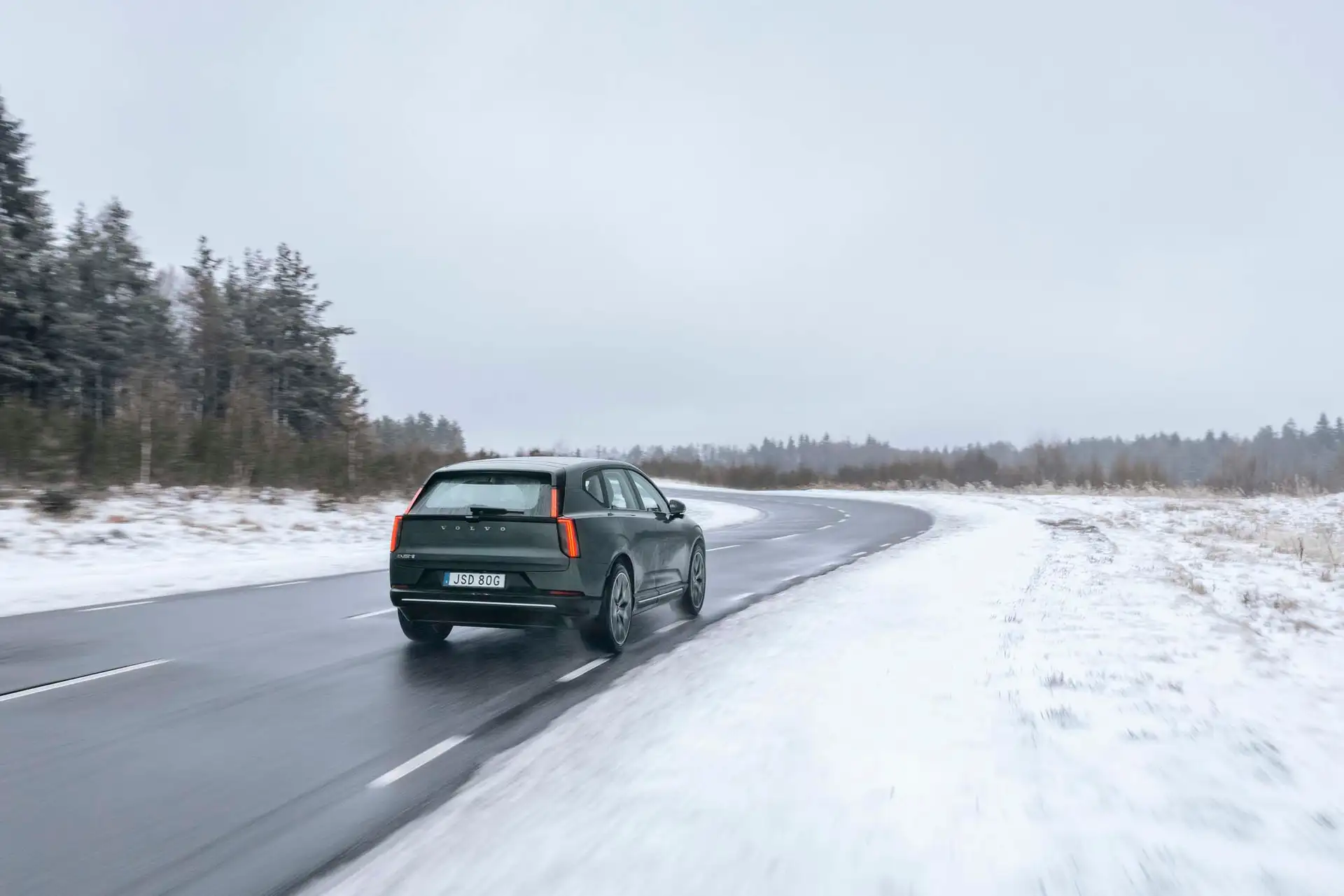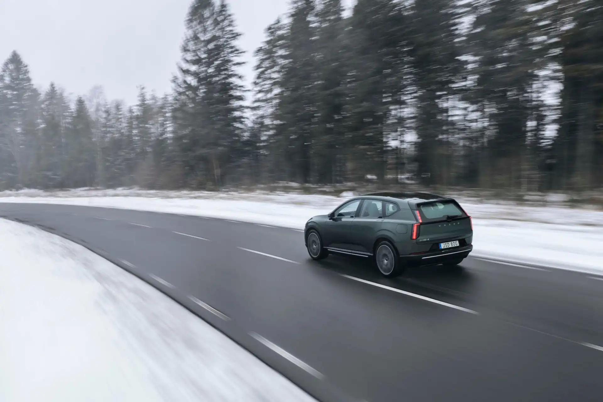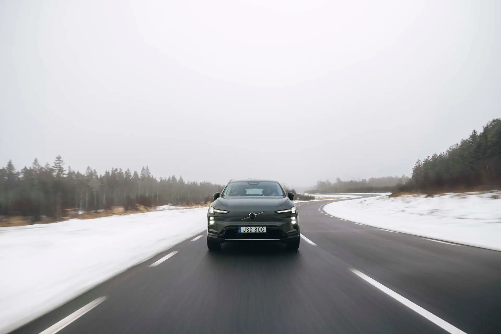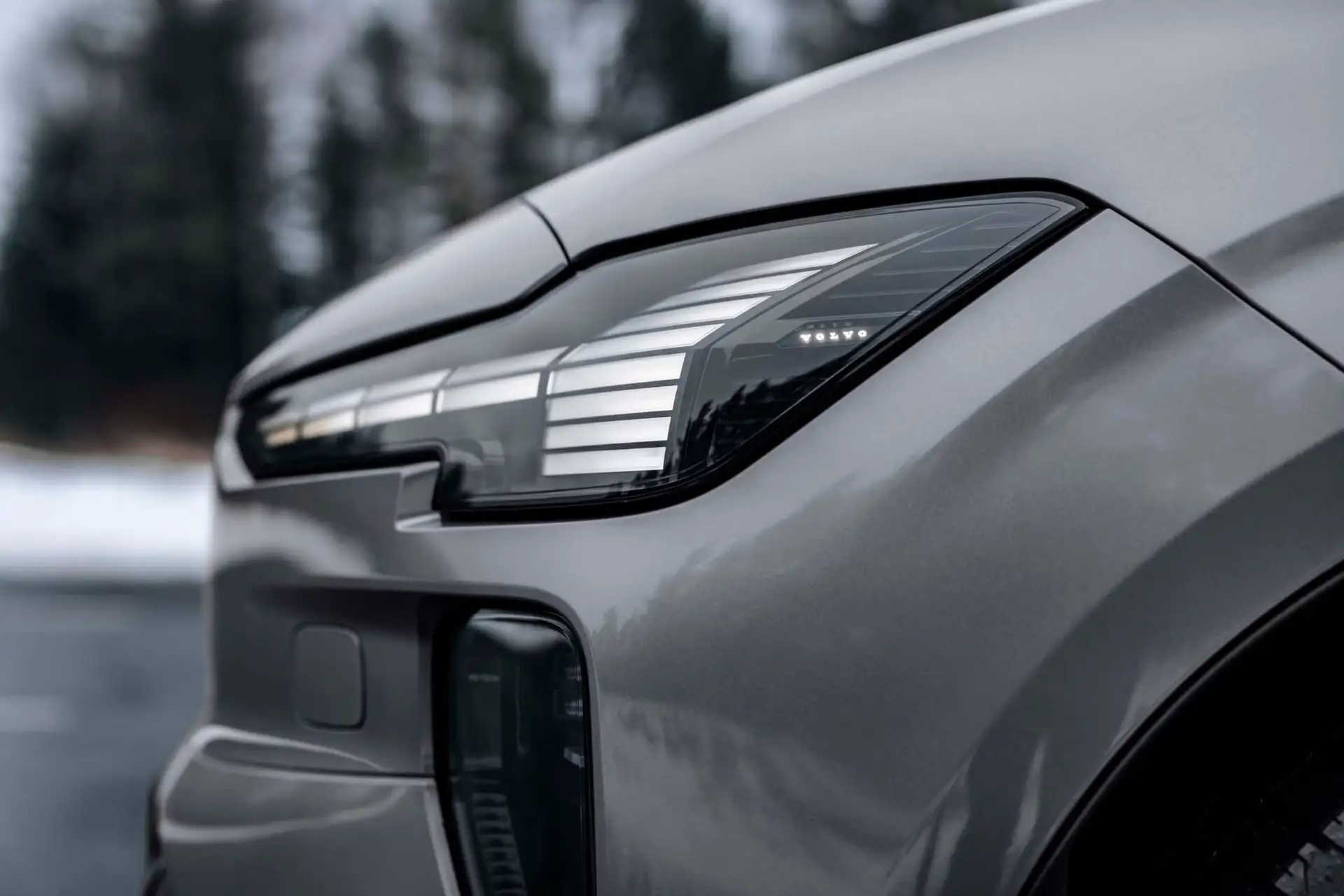 Cada linha do Volvo EX60 foi esculpida no túnel de vento com propósito matemático. O coeficiente de arrasto de 0,26 é notável para um SUV de porte médio, resultado de soluções que vão além do óbvio.