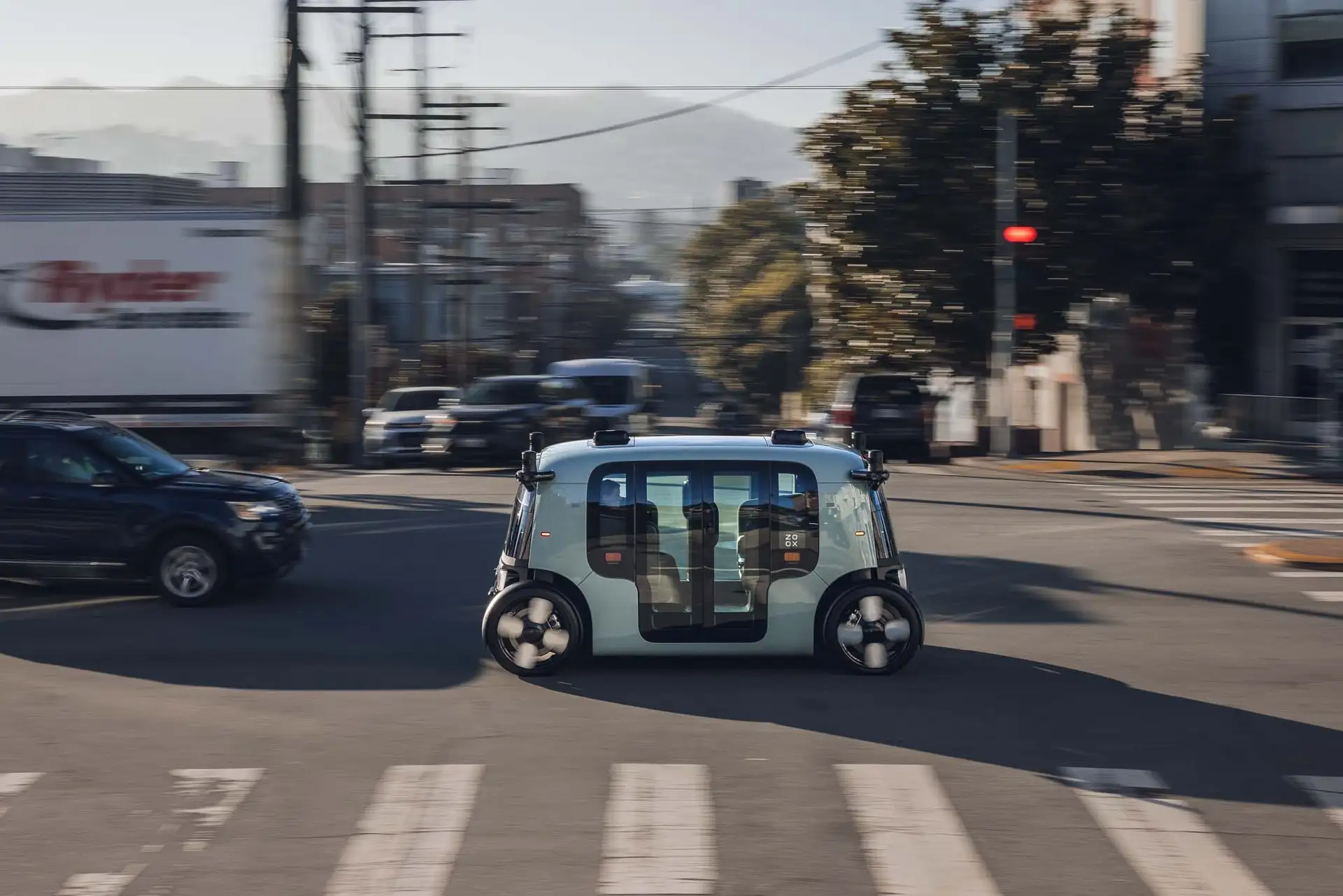 A Zoox também se concentrou fortemente na manobrabilidade urbana, porque o serviço denso nas cidades pune cada centímetro de raio de giro e cada hesitação no trânsito de baixa velocidade. Os amortecedores ativos fazem um trabalho convincente ao suprimir o movimento lateral, mas o arranjo de assentos voltados para trás ainda representa um risco de enjoo para alguns passageiros. A lógica de frenagem hipersensível da empresa é mais fácil de defender do que a alternativa, especialmente em um serviço AV voltado ao público, que não pode se dar ao luxo de incidentes de contato que virem manchetes.
