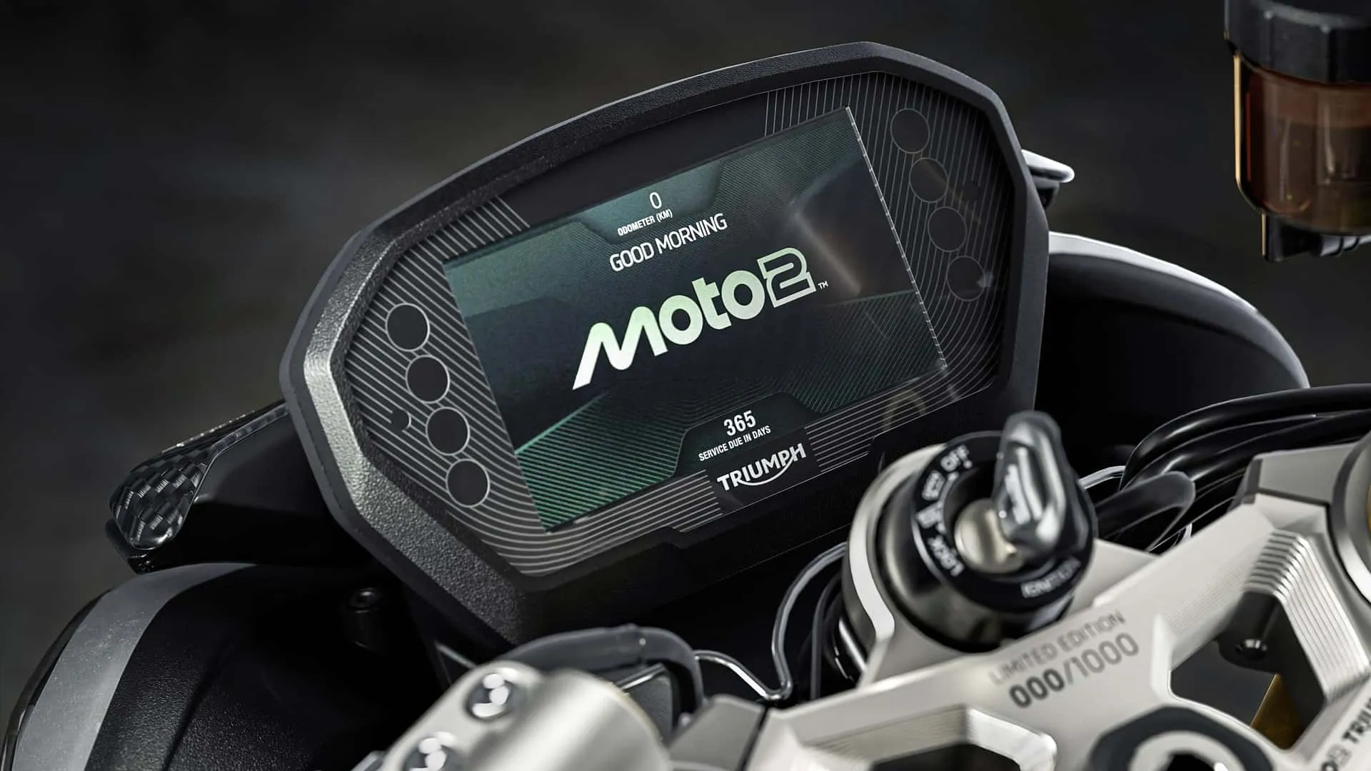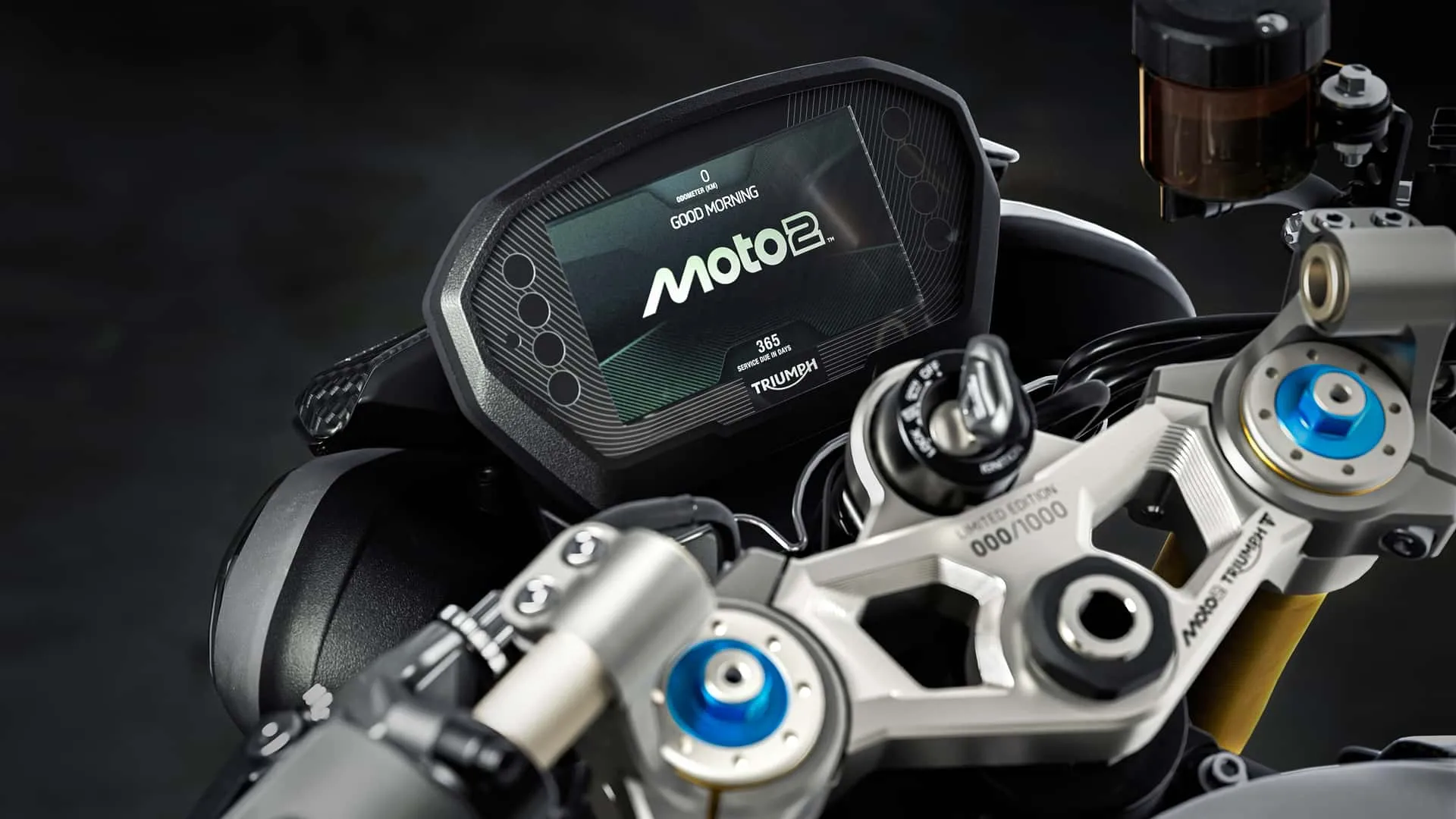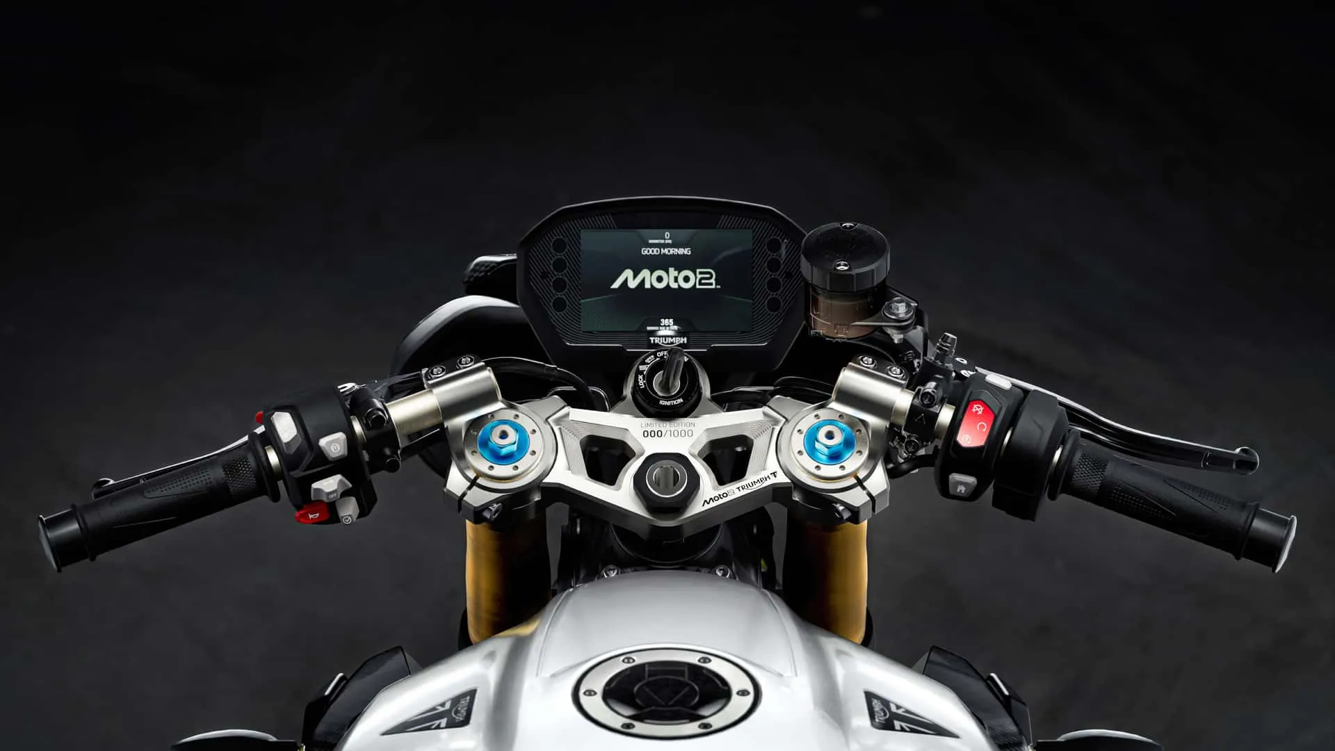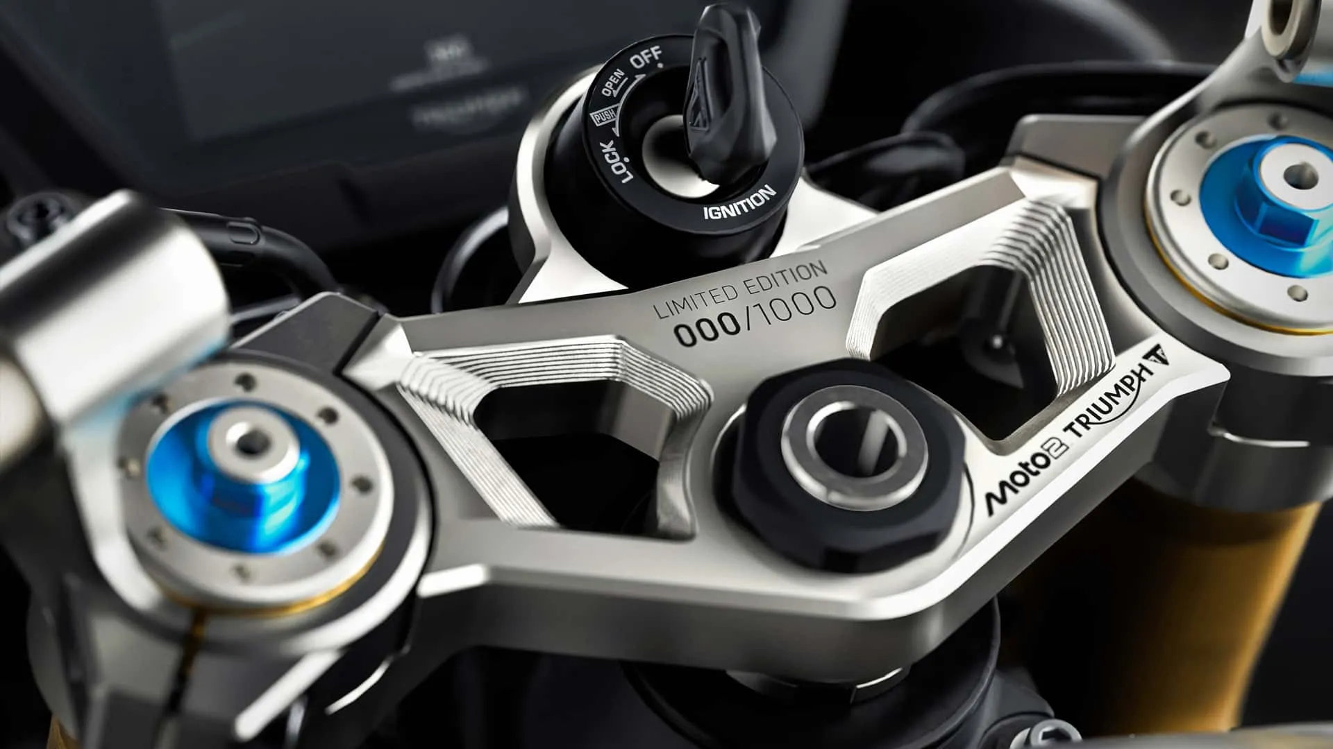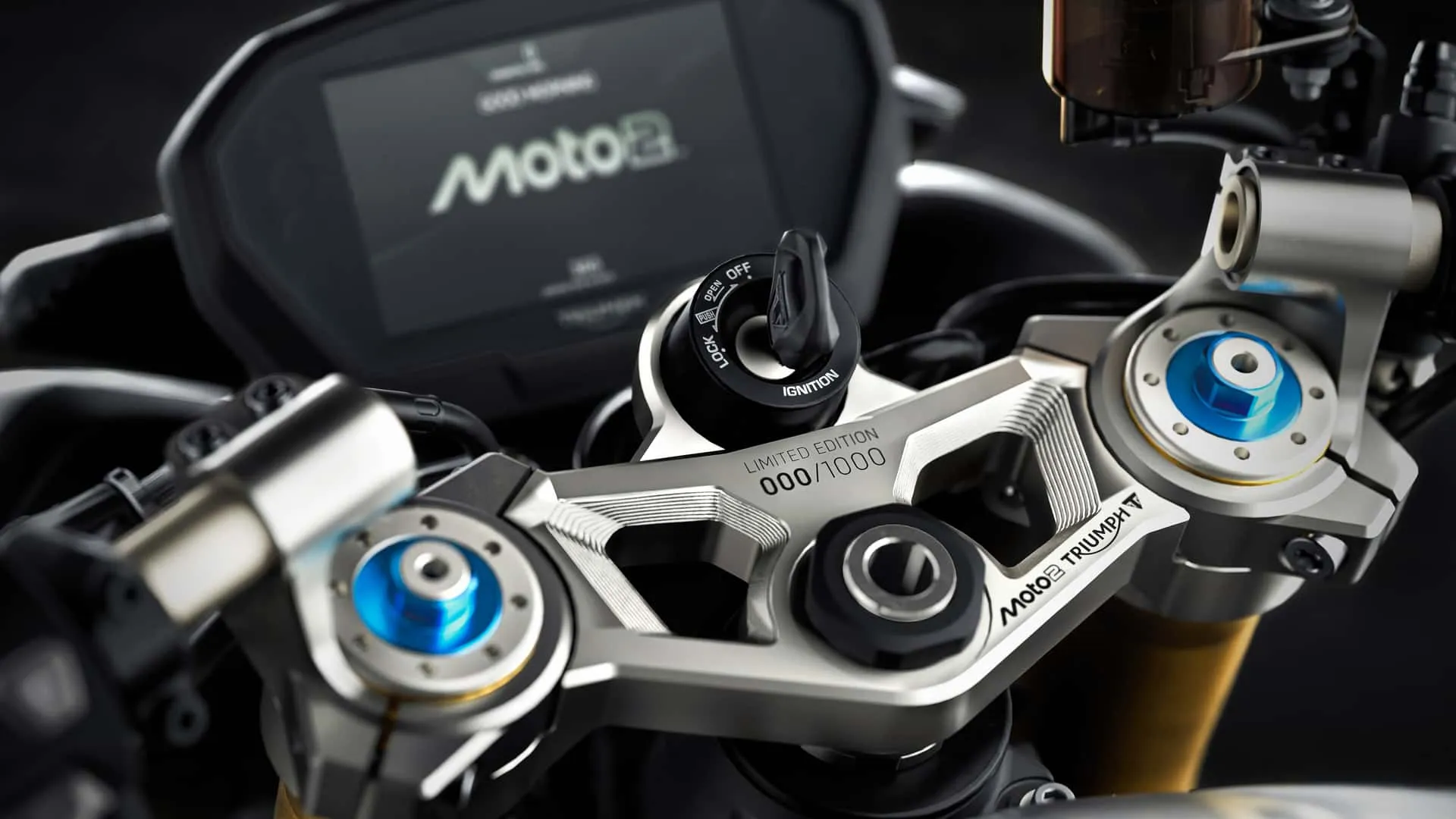 而 Street Triple 765 Moto2 则更上一层楼。仅限 1000 台全球编号,每台都在上夹上 单独编号